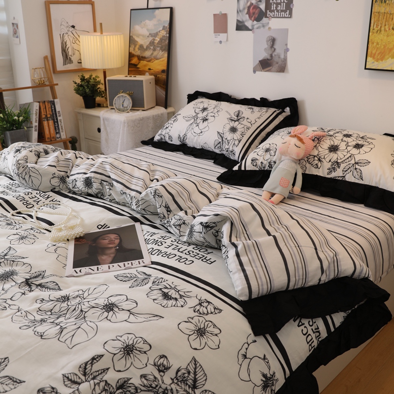 花边款美式田园花卉三件套小清新床上四件套全棉纯棉被套1.8米1.5