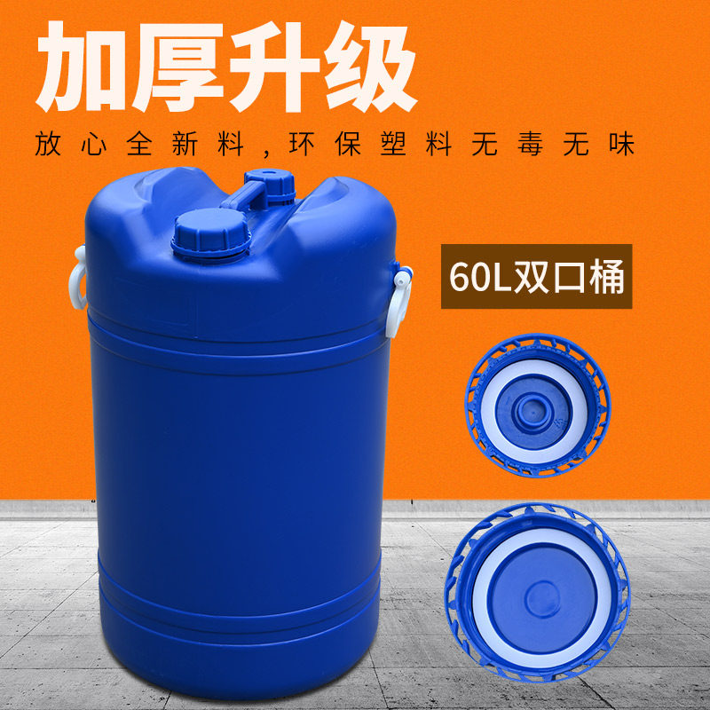 60升双口塑料桶大小口蓝白色加厚洗漱剂化工桶带盖纯净水罐油桶