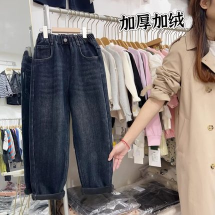 男童加绒牛仔裤冬季一体绒裤子潮