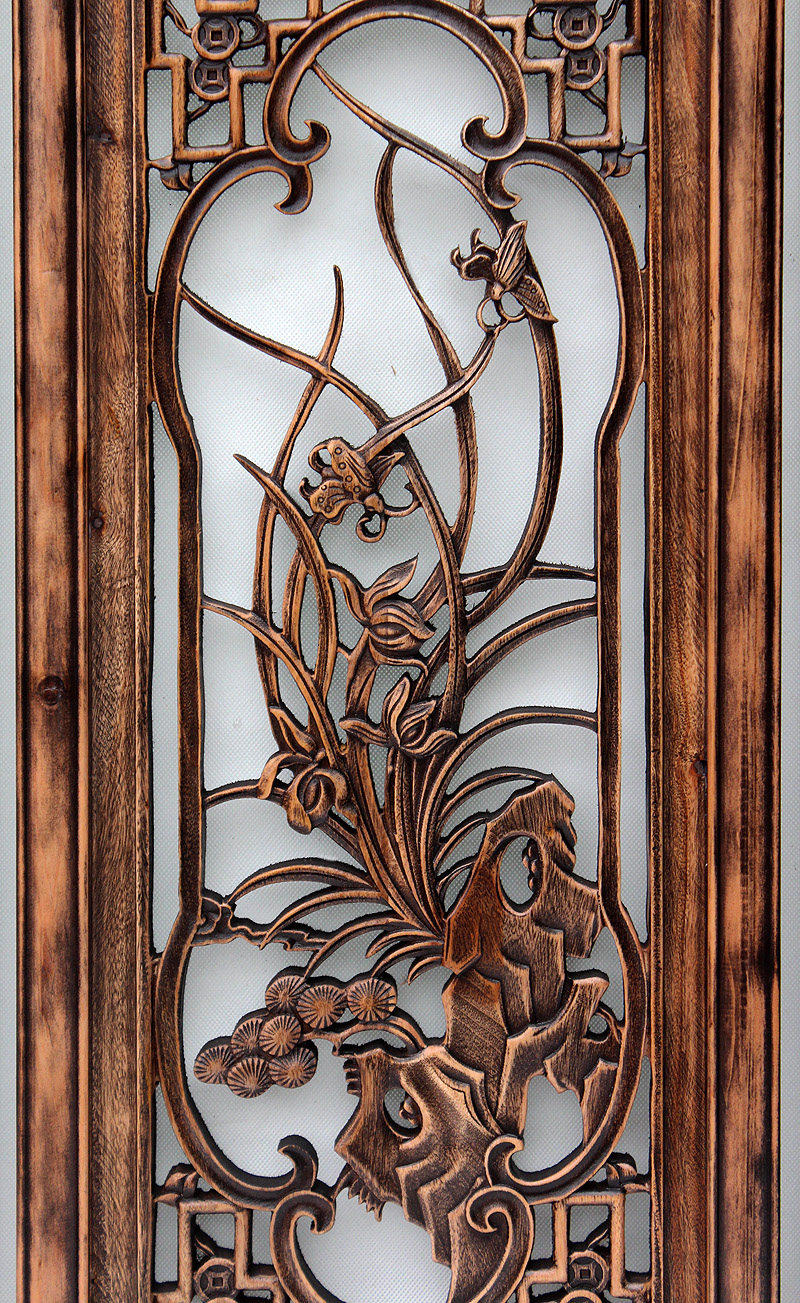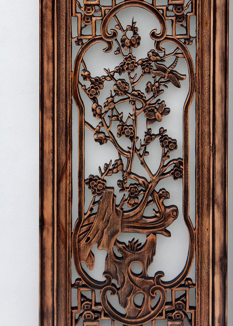 背景墙装饰客厅墙壁家居工艺中式植物梅兰东阳木雕 挂件四条室内