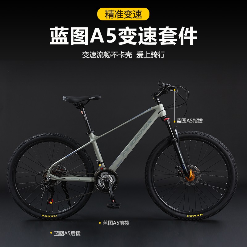 凤凰山地车自行车男油碟变速越野单车镁合金赛车上班骑女学生成人
