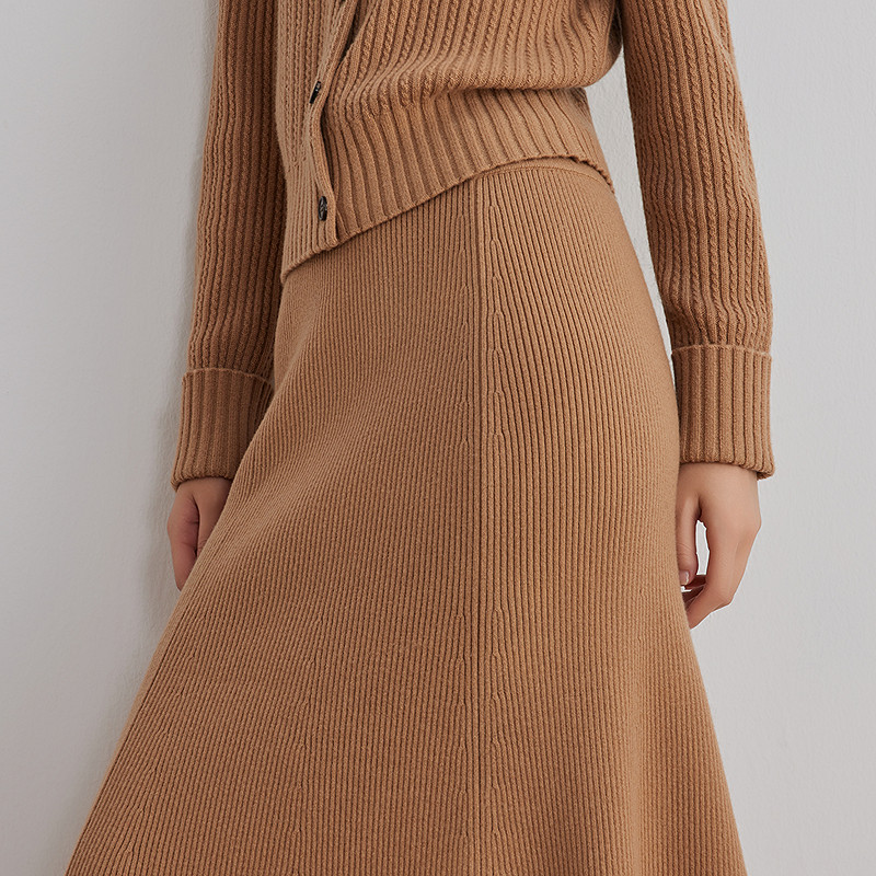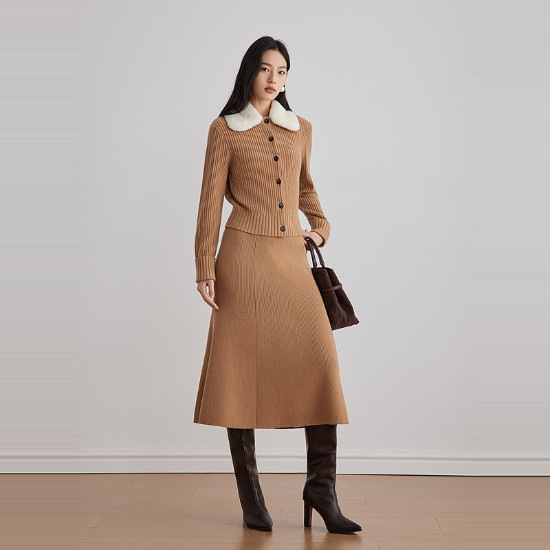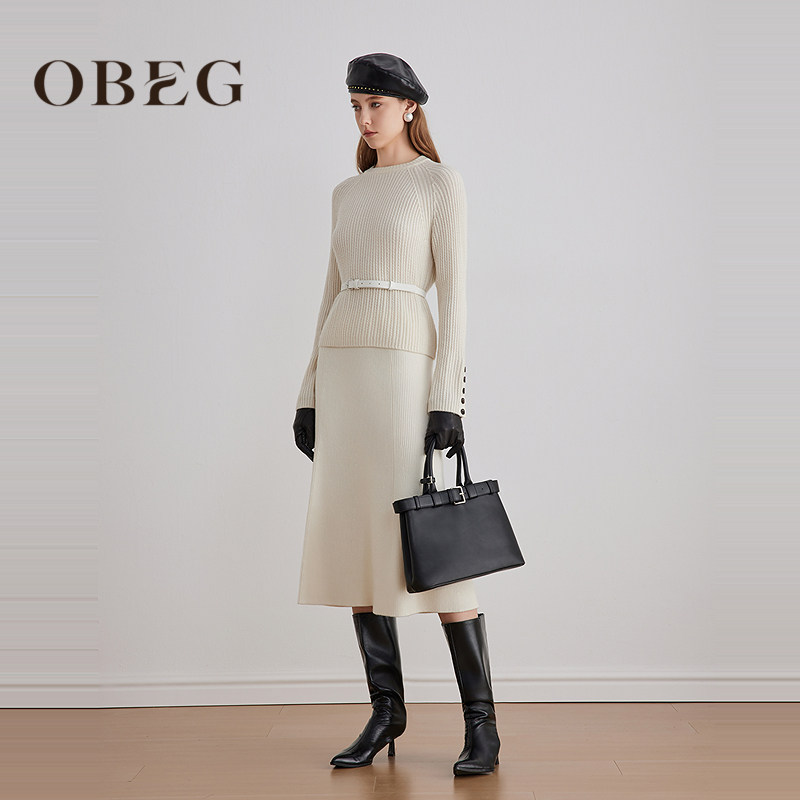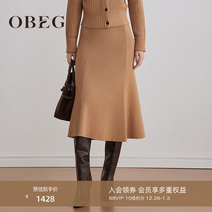 【商场同款】OBEG欧碧倩25冬复古坑条羊毛针织鱼尾半身裙10504084