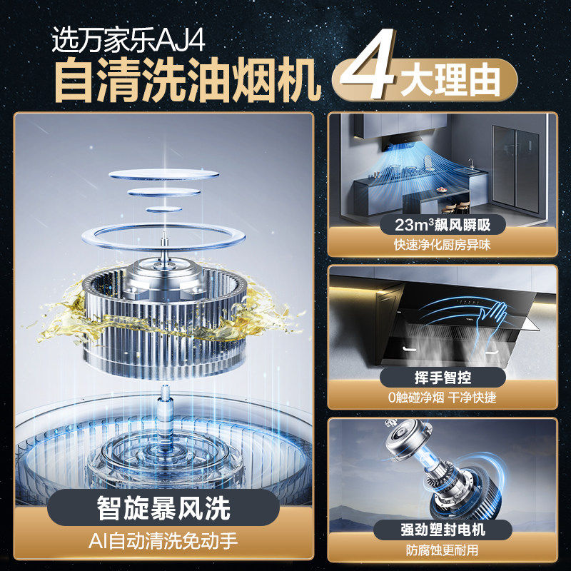 万家乐小飓风AJ4/J5R2家用油烟机燃气灶套装厨房侧吸抽油烟机