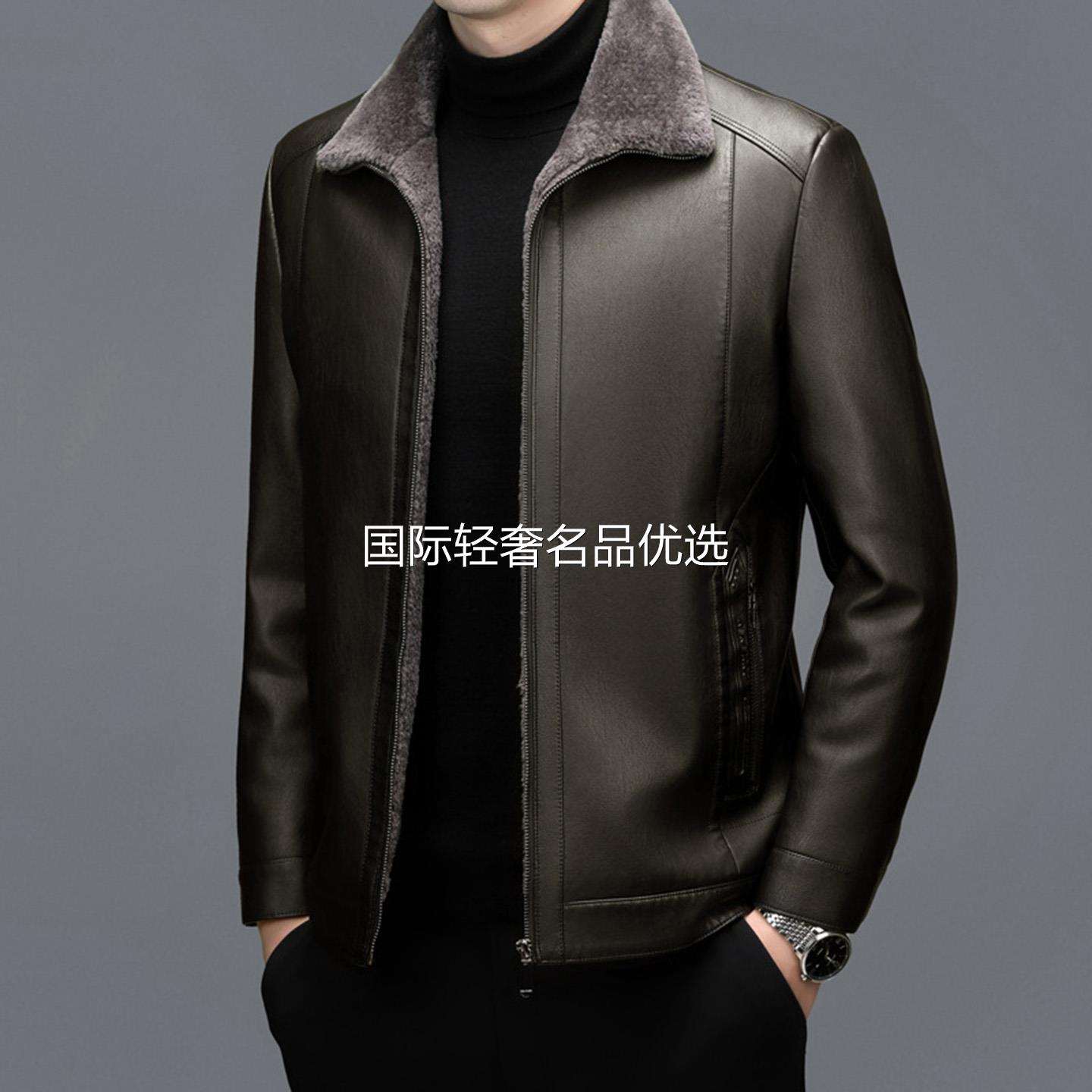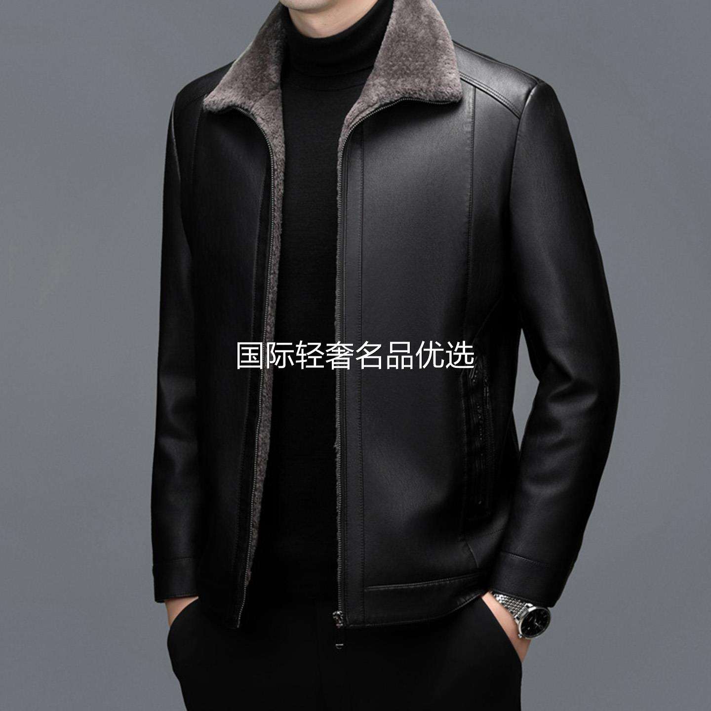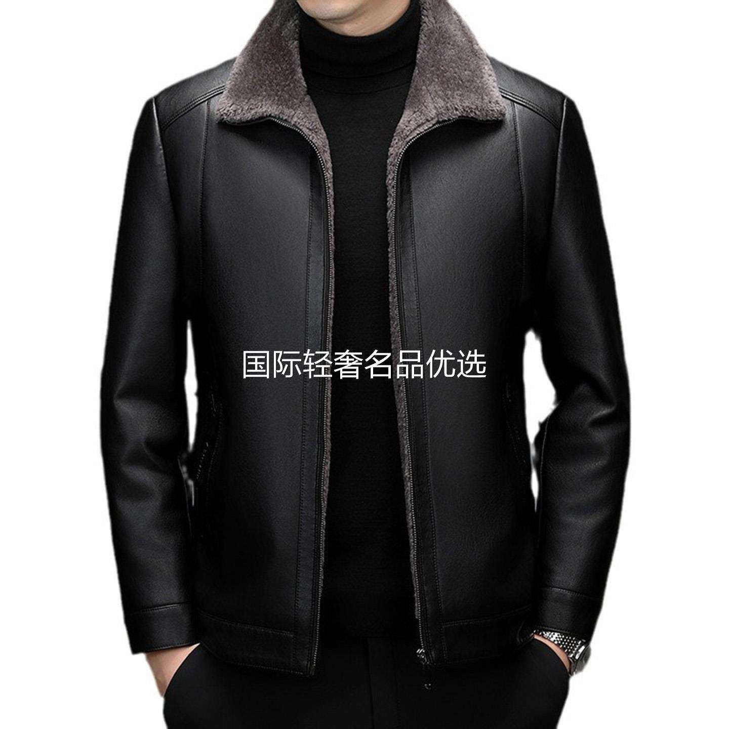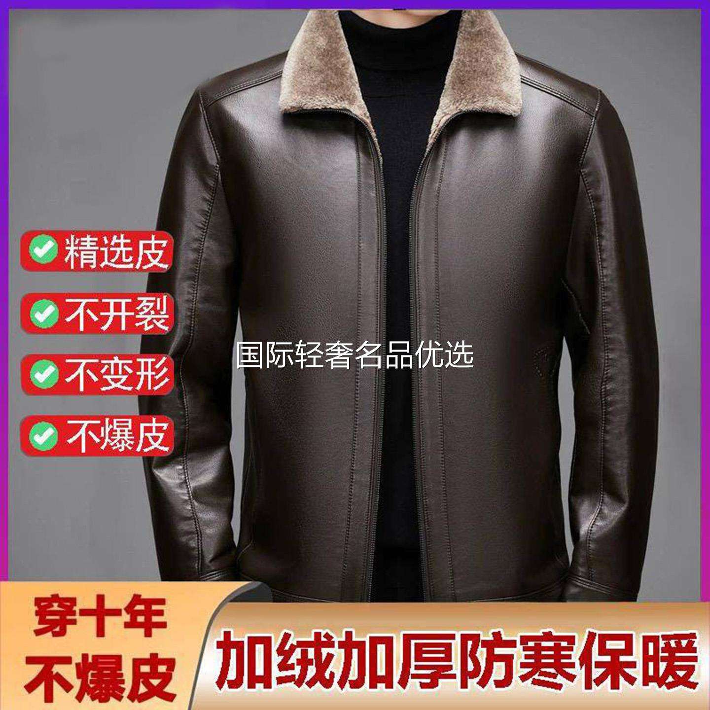 瞳庞男装秋冬加绒皮衣男士商务休闲外套防寒保暖夹克中老年上衣潮