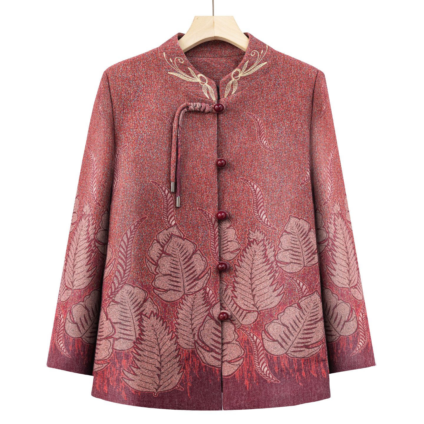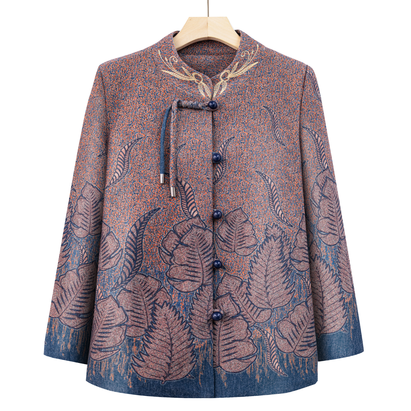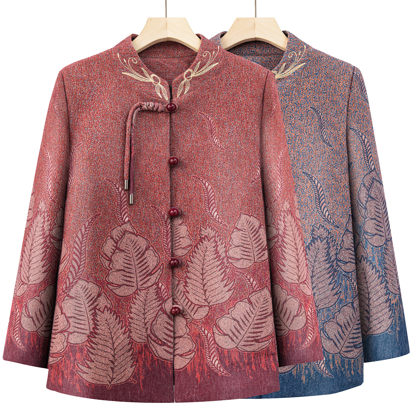 中老年人春秋女装妈妈薄款翻领外套奶奶新款上衣老人太太秋季衣服