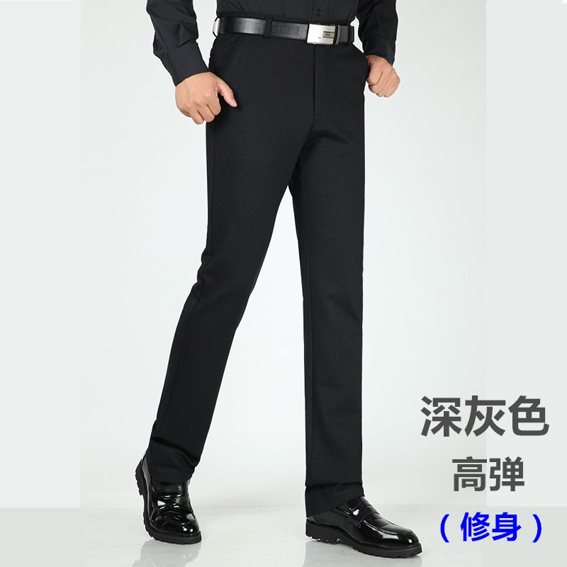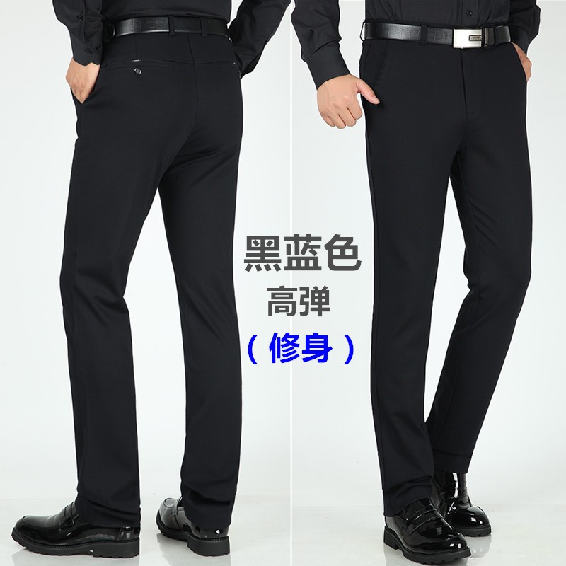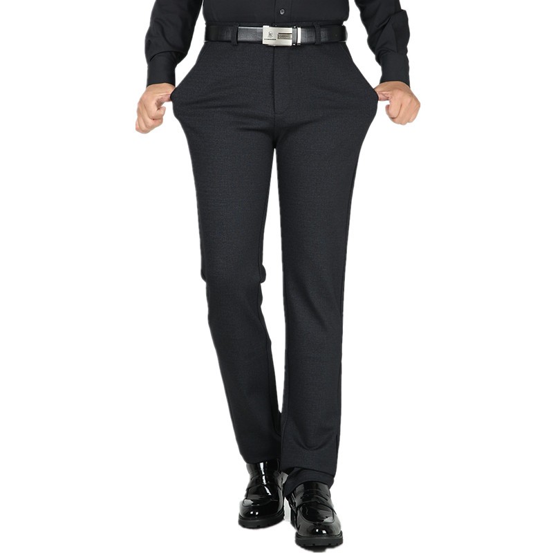 秋冬厚款高弹力修身直筒男裤子垂感丝滑免烫休闲裤西裤商务男长裤