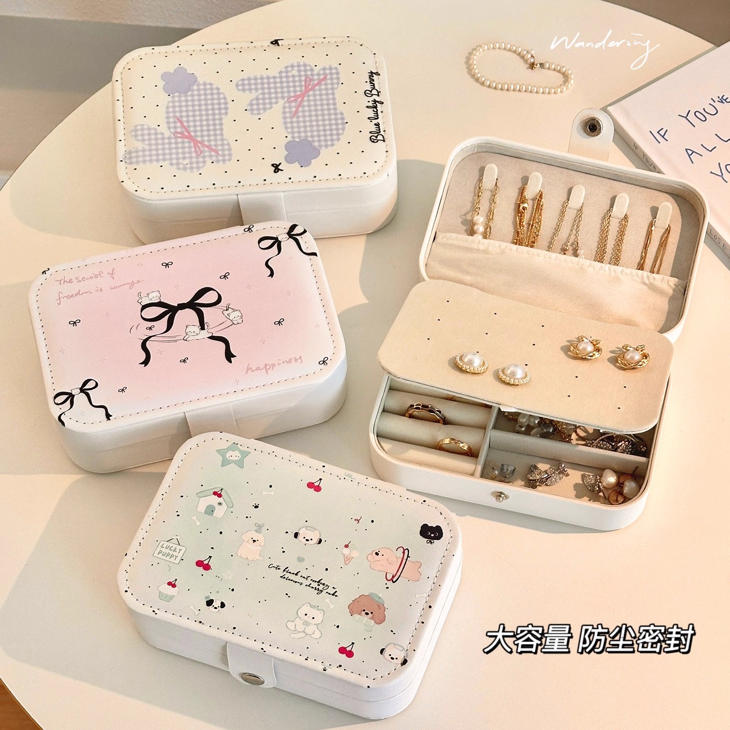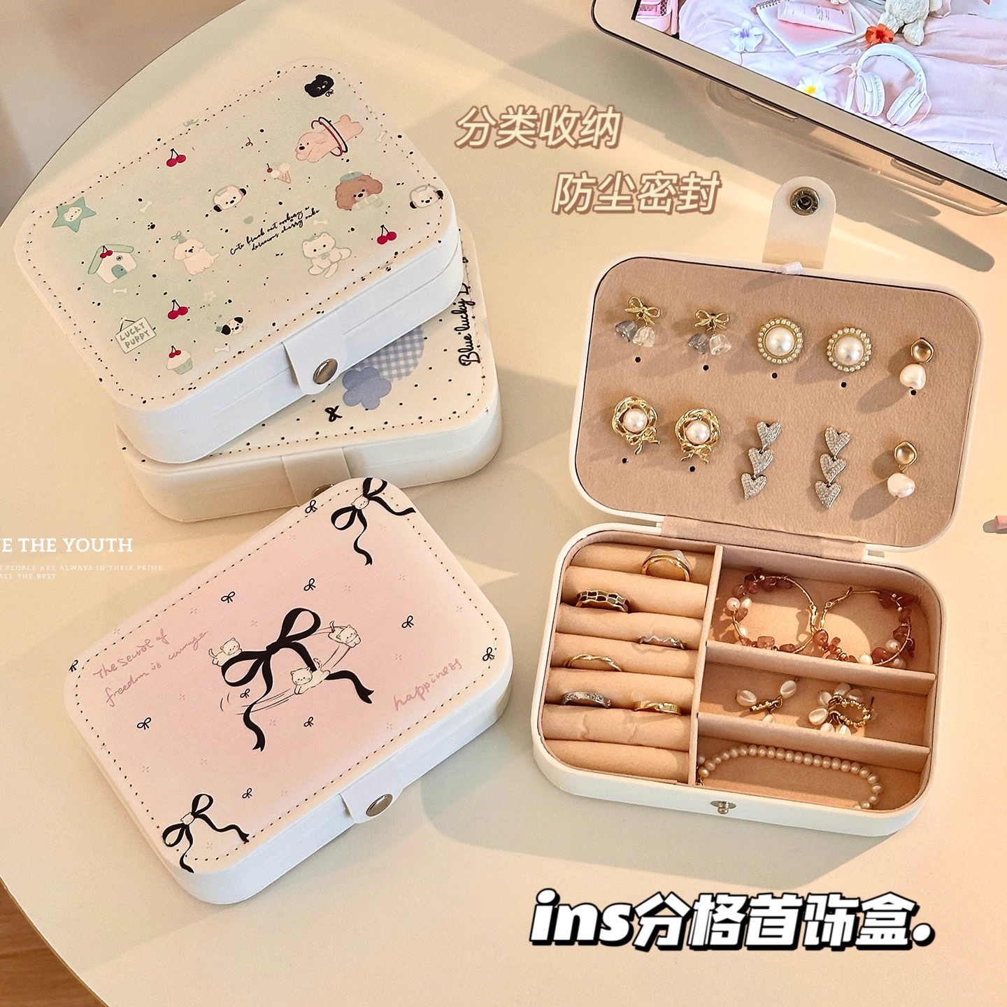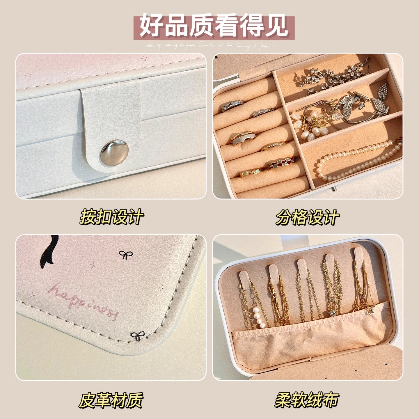 首饰收纳盒高档轻奢大容量三金便携戒指项链耳饰小型饰品盒首饰盒
