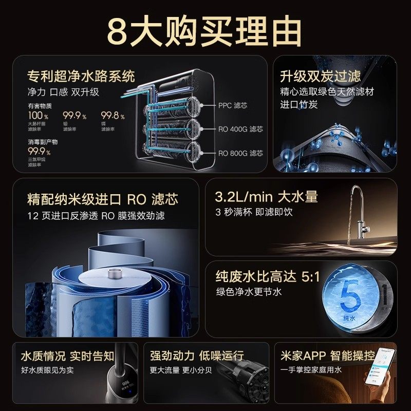 小米米家双核水龙头过滤净水器1200GPro家用直饮
