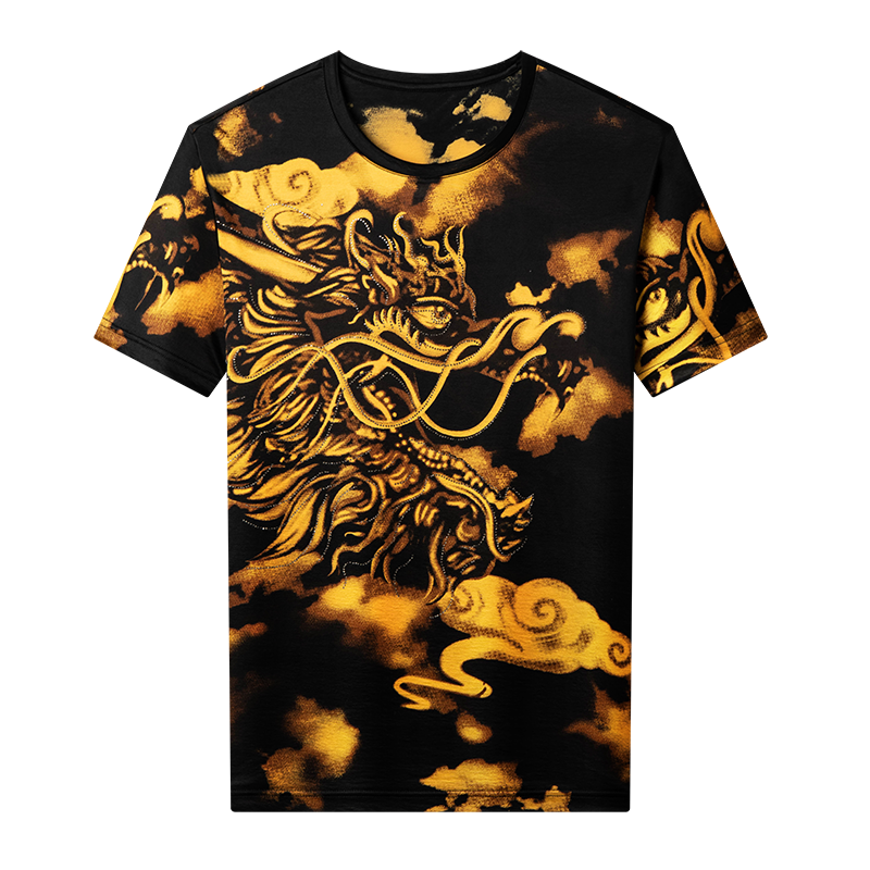 皮尔卡丹中国风龙纹短袖T恤男