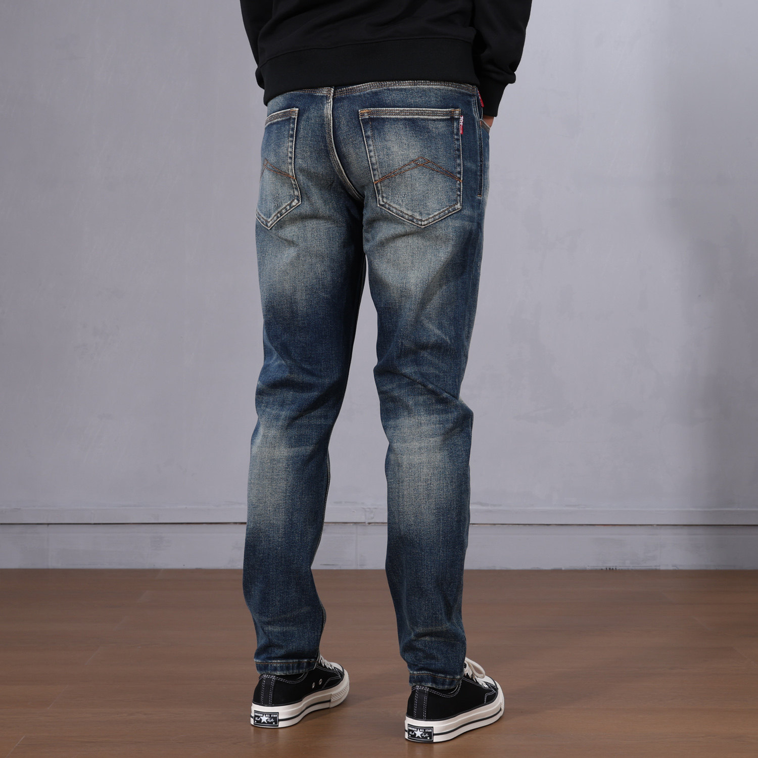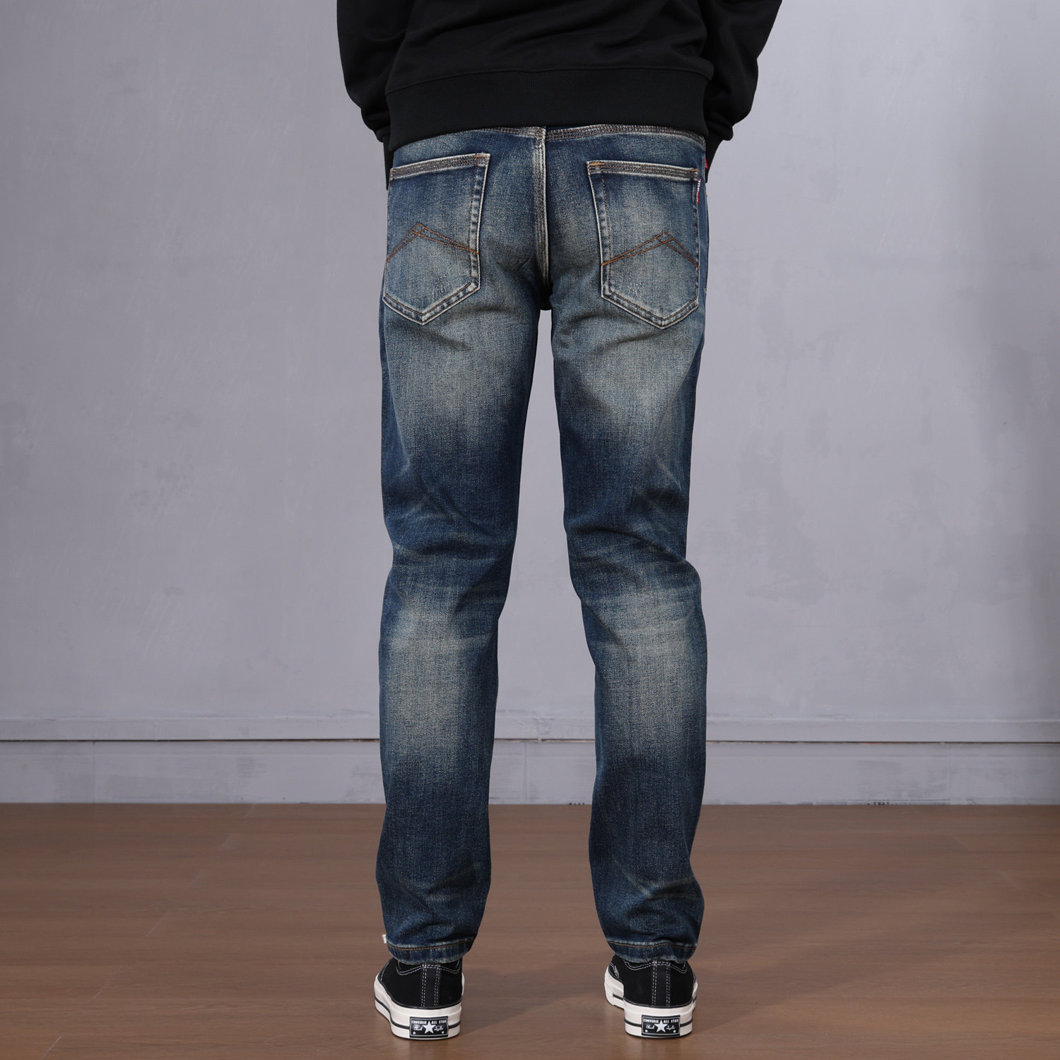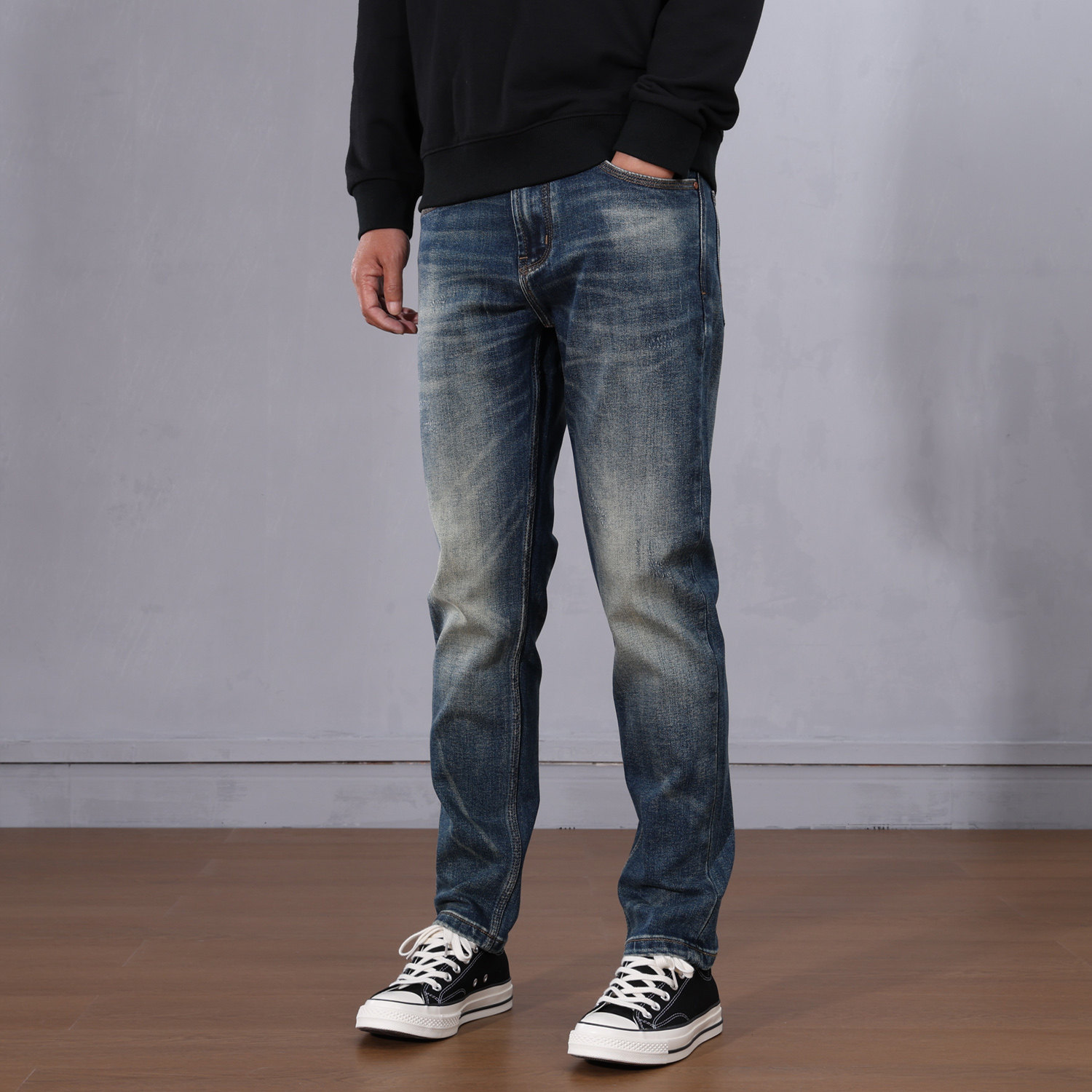 秋冬天厚款弹力牛仔裤男装修身小直筒韩版九分百搭青年时尚长裤子
