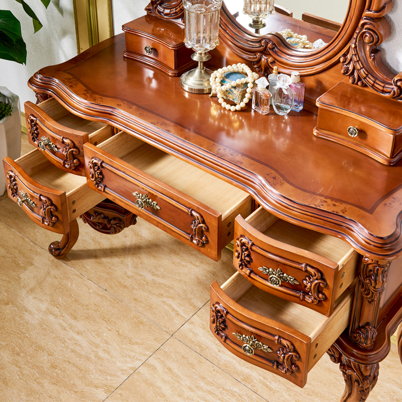 欧式实木梳妆台 美式别墅卧室仿古色烤漆化妆桌多抽屉公主化妆台