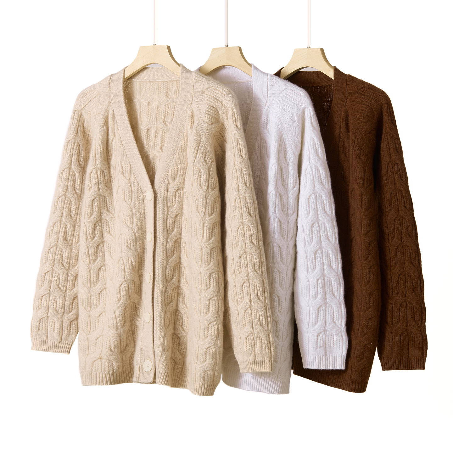 2025秋冬新款保暖外套女100%纯山羊绒加厚中长款V领开衫针织衫