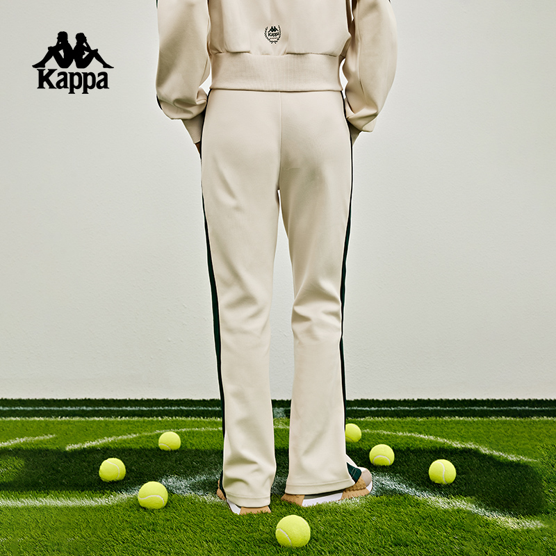 Kappa卡帕针织休闲裤2025新款女撞色运动喇叭裤休闲显瘦长裤卫裤