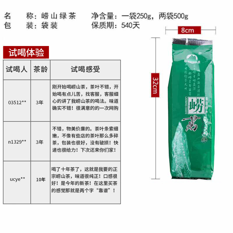 正宗崂山绿茶新茶叶豆香浓香型500g袋装散装山东青岛特产礼盒口粮