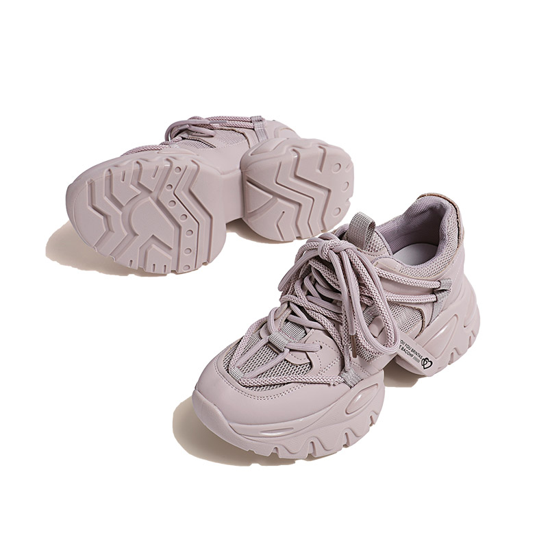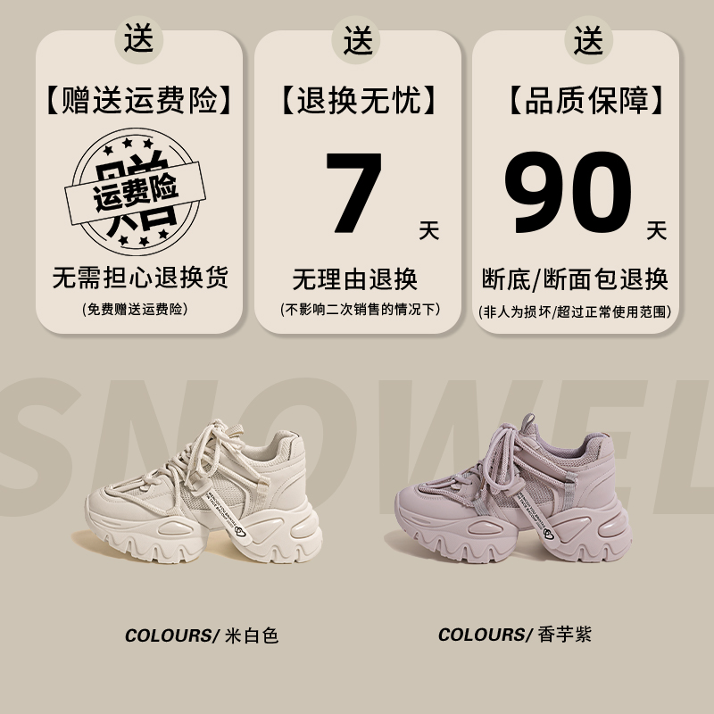 小个子内增高老爹鞋小白鞋2025新款夏秋透气松糕厚底款香芋紫女鞋