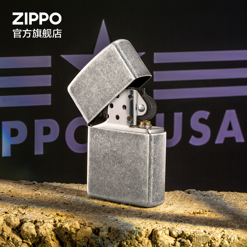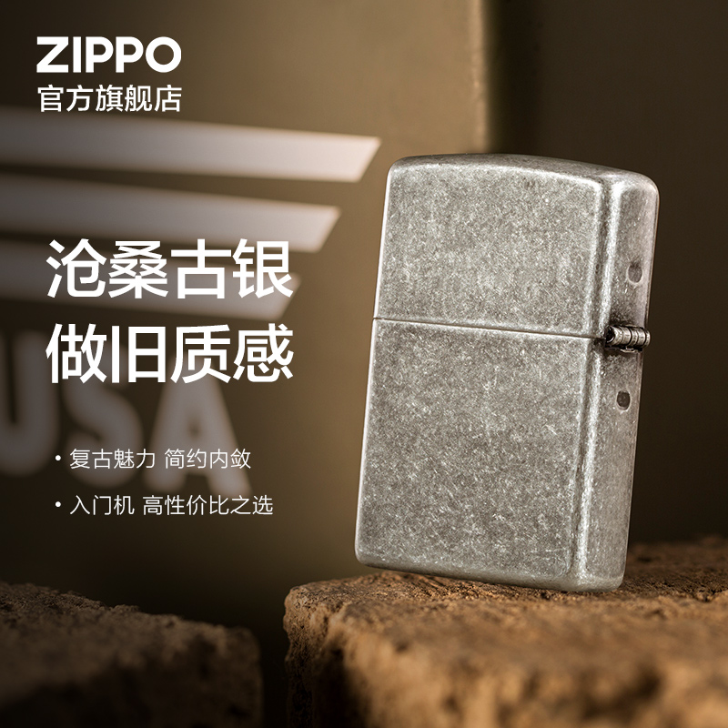 Zippo官方旗舰店正品之宝仿古银防风煤油打火机送男友生日礼物