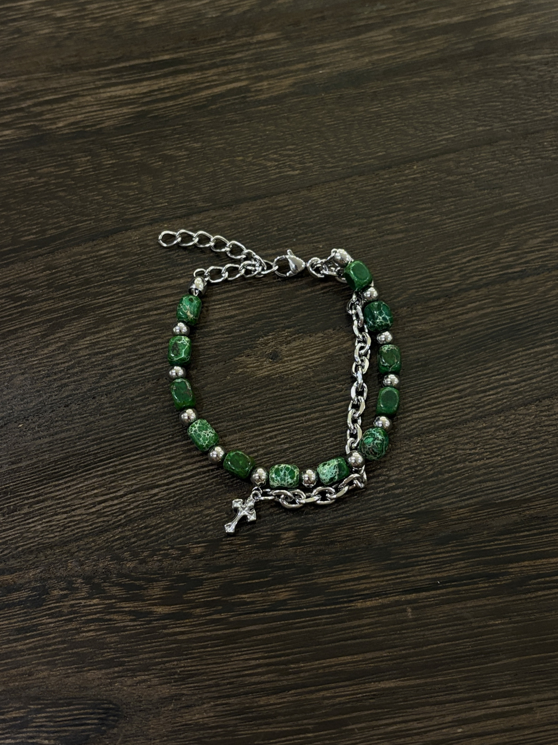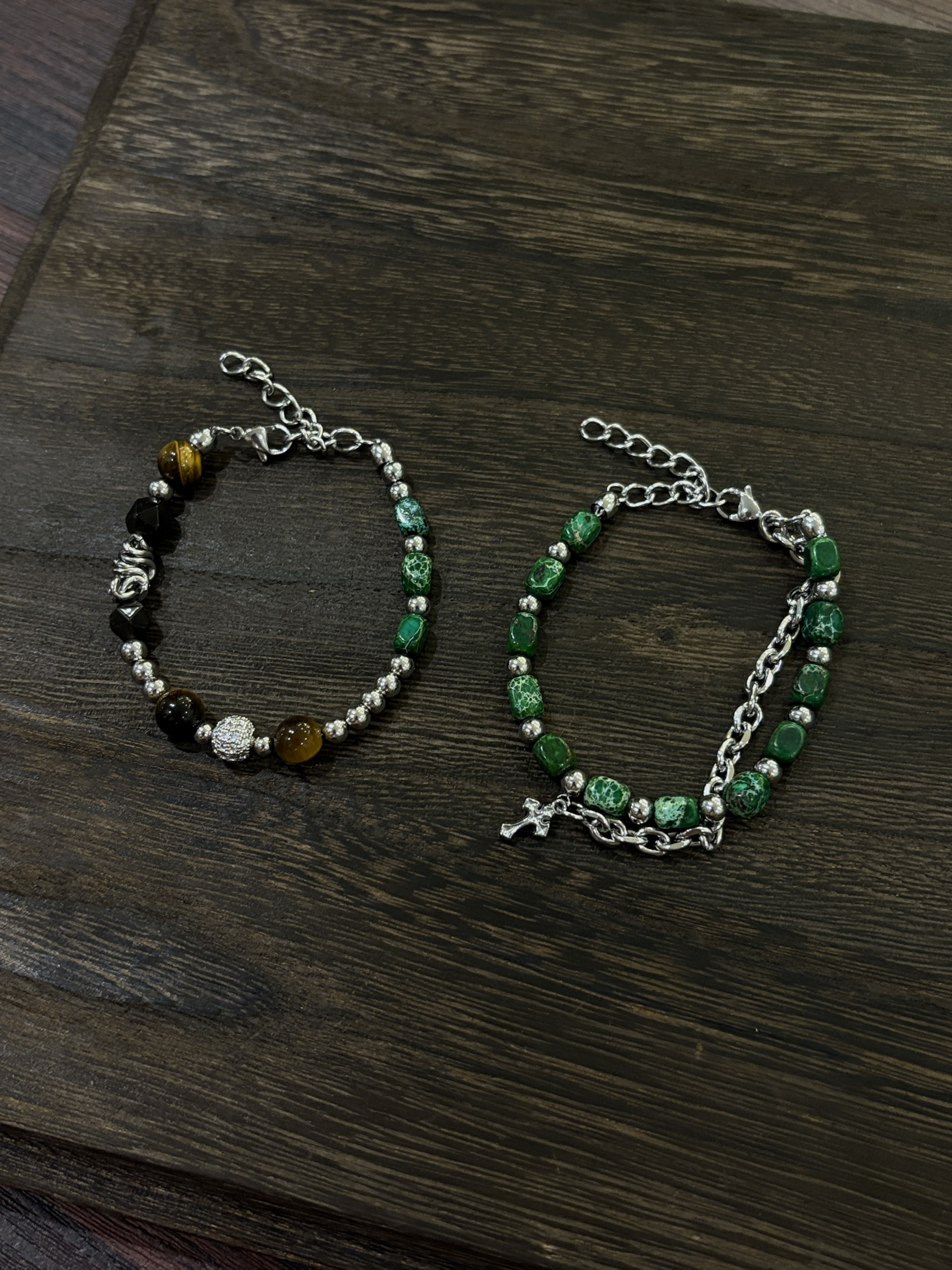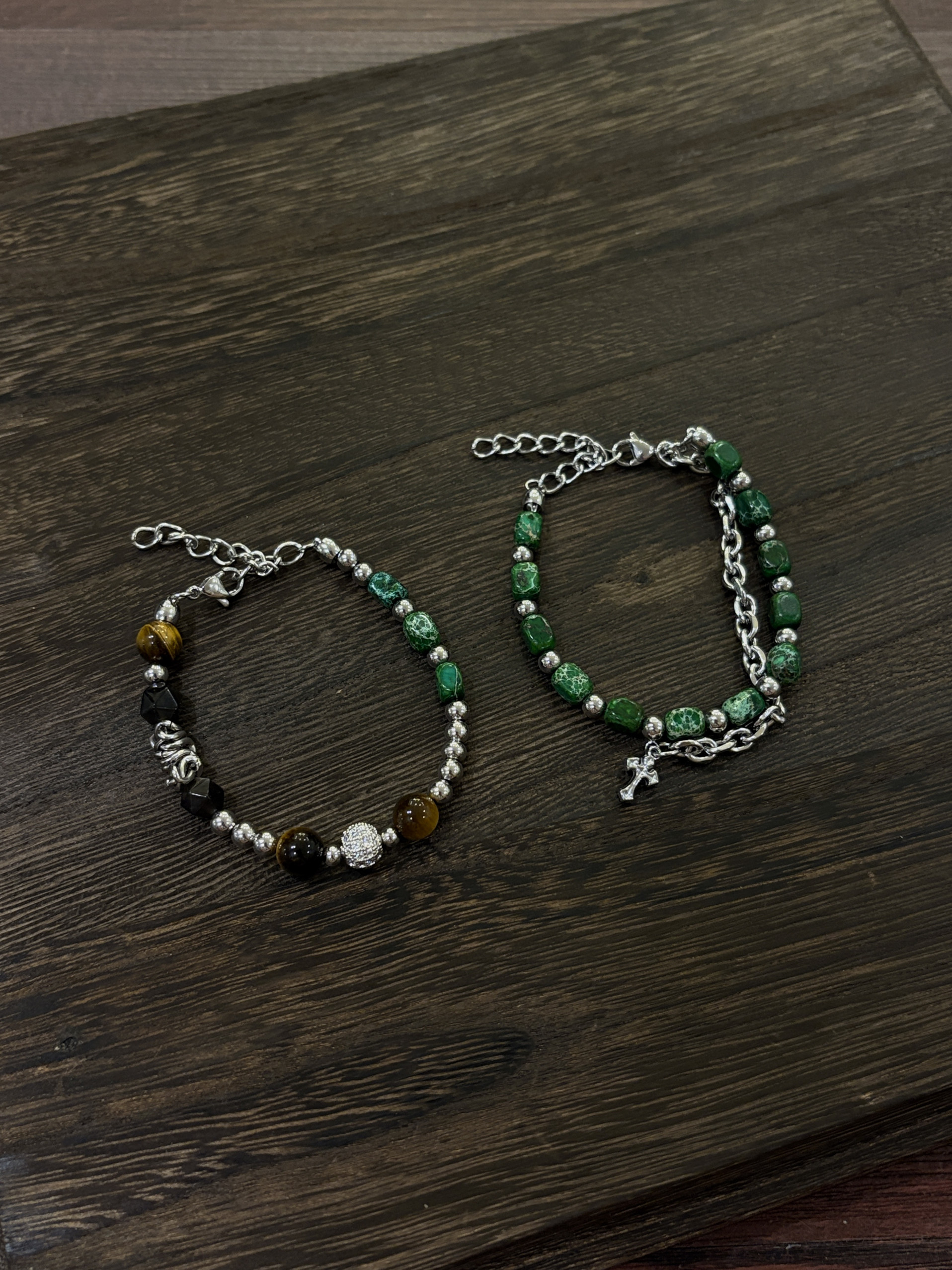小心袖口 原创天然石珠钛钢手链转运珠男女小众简约日常通勤配饰