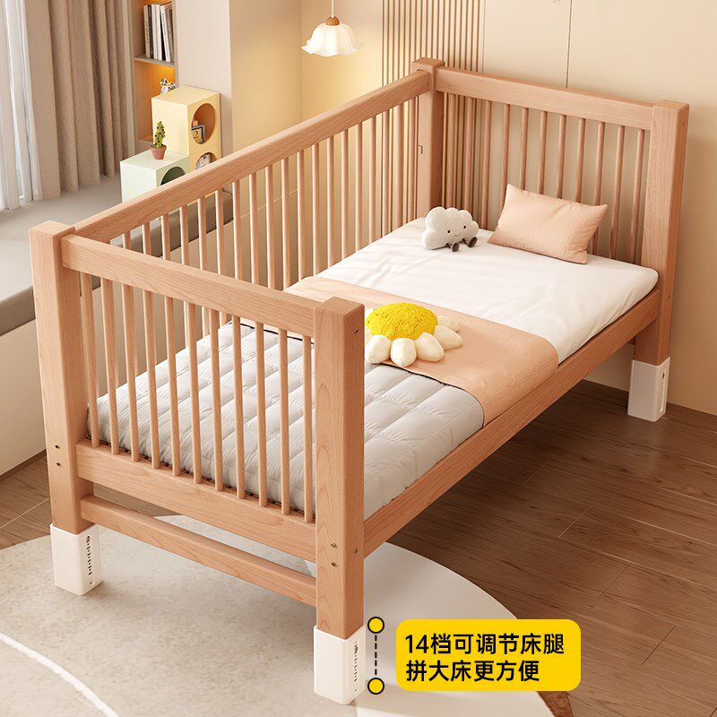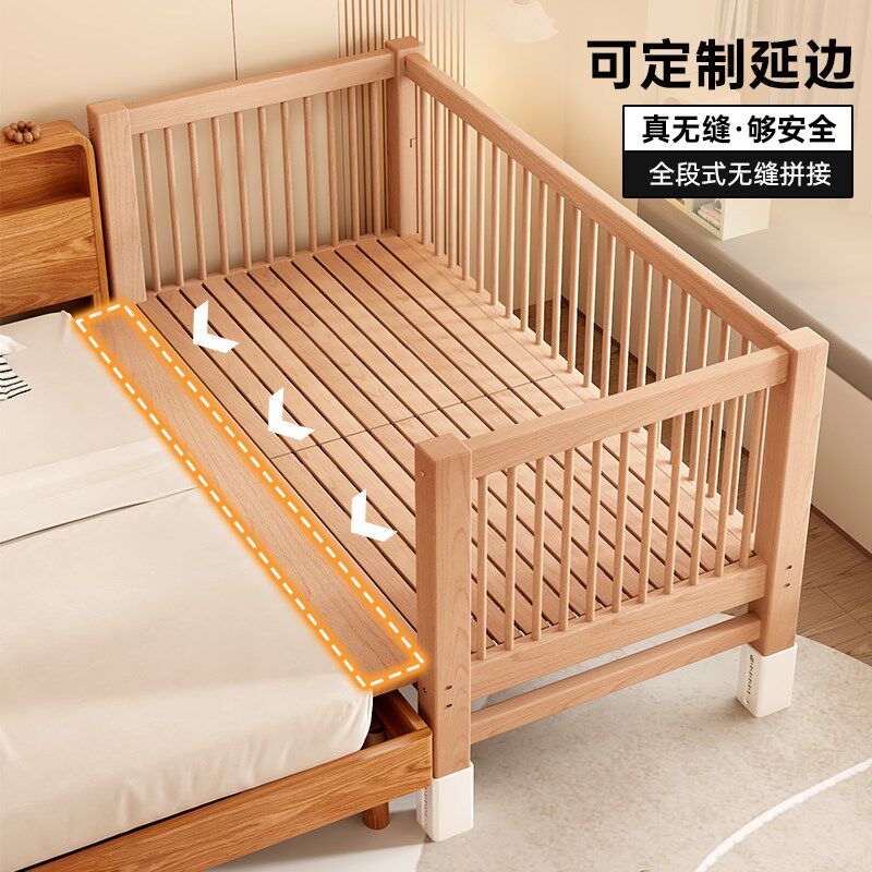 榉木儿童婴儿拼接床床边加宽带护栏可升降桌腿男孩女孩宝宝单人床