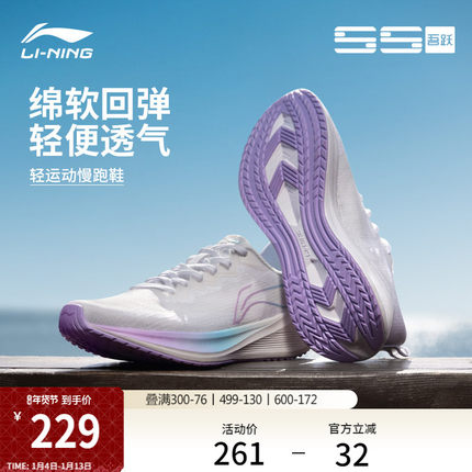 李宁吾跃丨 跑步鞋女鞋减震跑鞋网面透气跳绳体测软底休闲运动鞋
