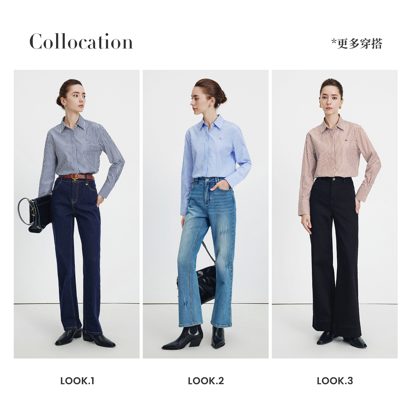 Navigare意大利小帆船长袖衬衫女士2025秋季新款纯棉蓝色条纹衬衣