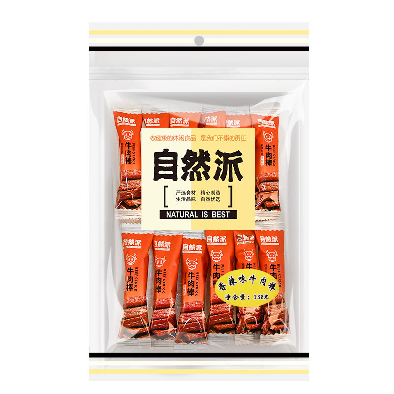 自然派牛肉棒138gx2即食牛肉条充饥零食休闲小吃独立小包装香辣味