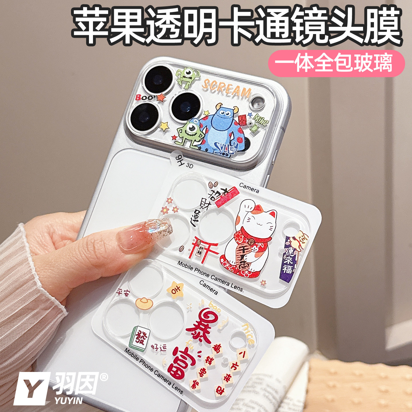 适用苹果17ProMax透明卡通镜头膜17Pro摄像头保护膜16promax相机增透iPhone15Plus钢化玻璃14一体全包13新年