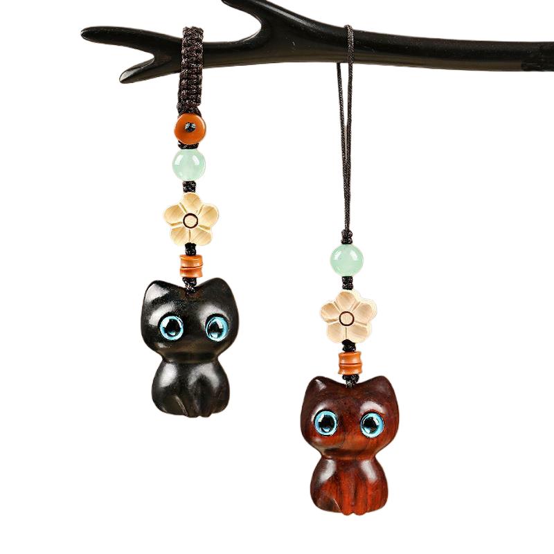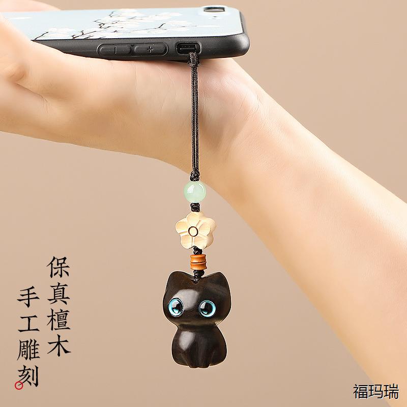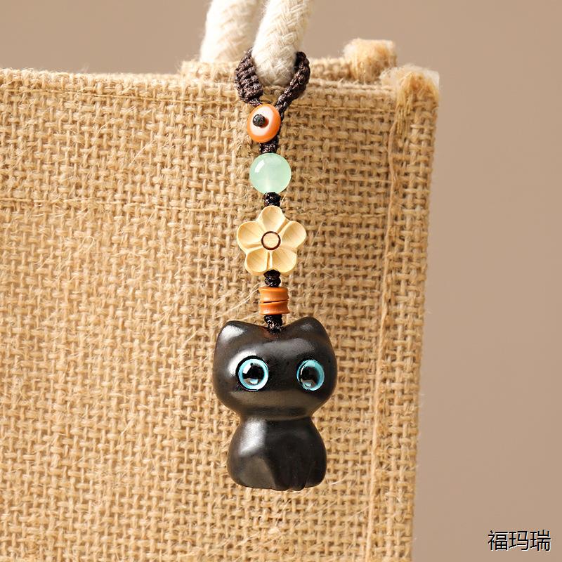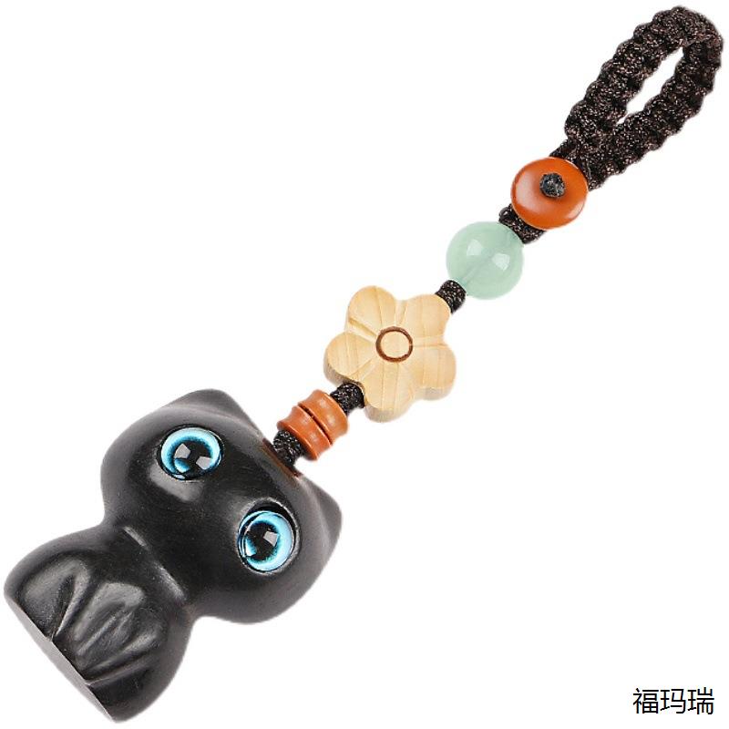 黑檀木猫咪汽车钥匙扣挂件男女情侣可爱手机链吊坠绳创意饰品