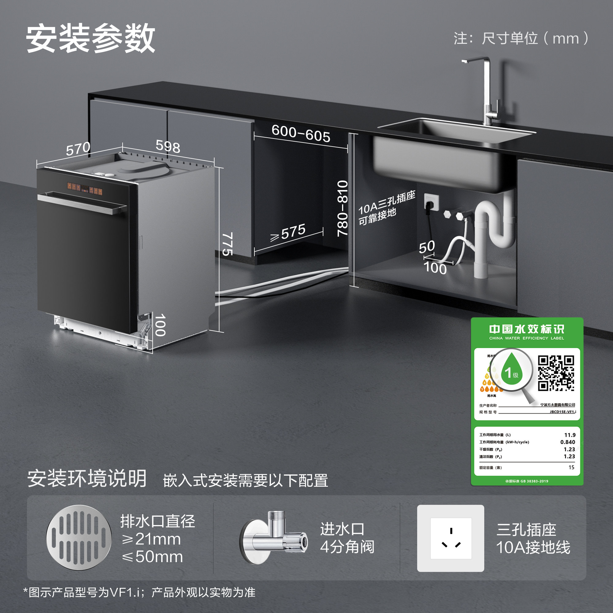 [方太新月]嵌入式洗碗机VF1智能彩膜屏全自动家用一体15套大容量