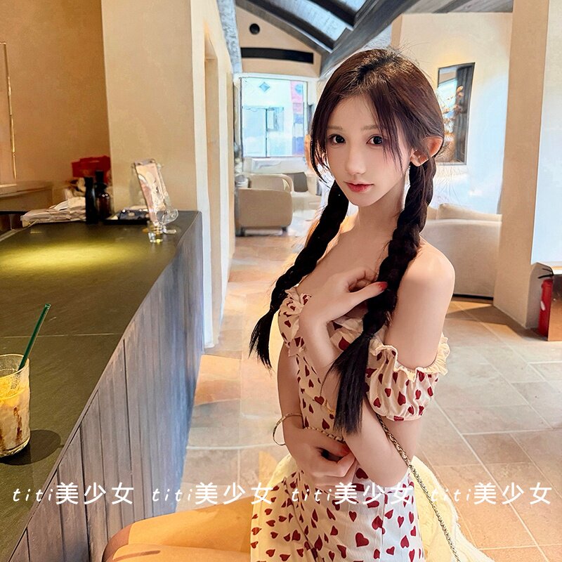 【TiTi美少女】纯欲性感印花连衣裙设计感绑带甜美辣妹修身包臀裙
