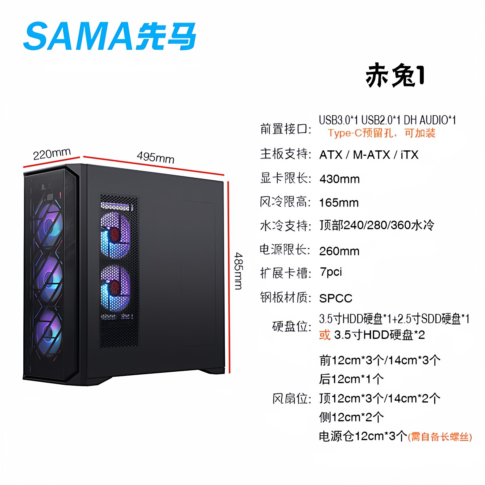 先马赤兔1台式机电脑机箱侧透主机箱ATX大机箱支持360水冷 高颜值