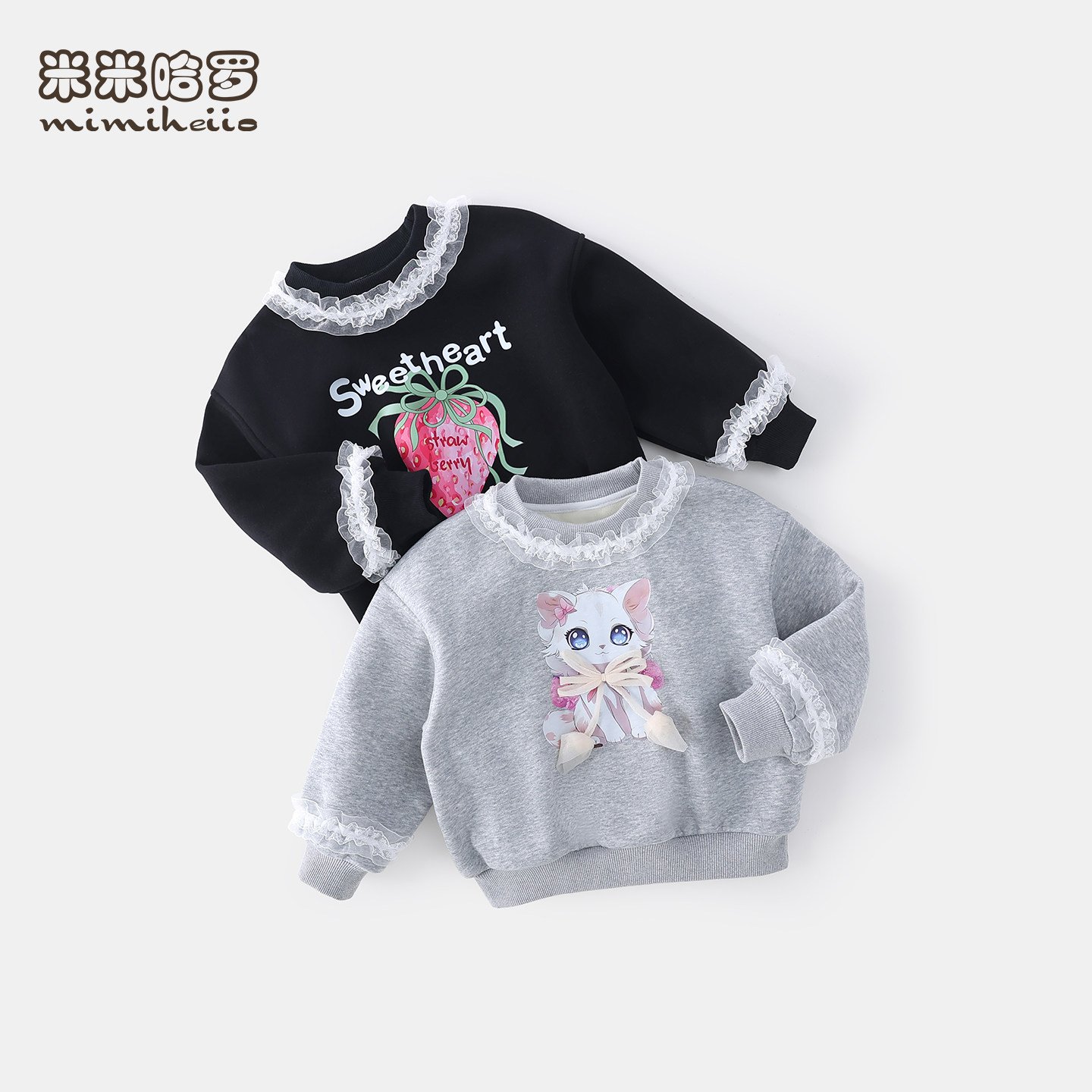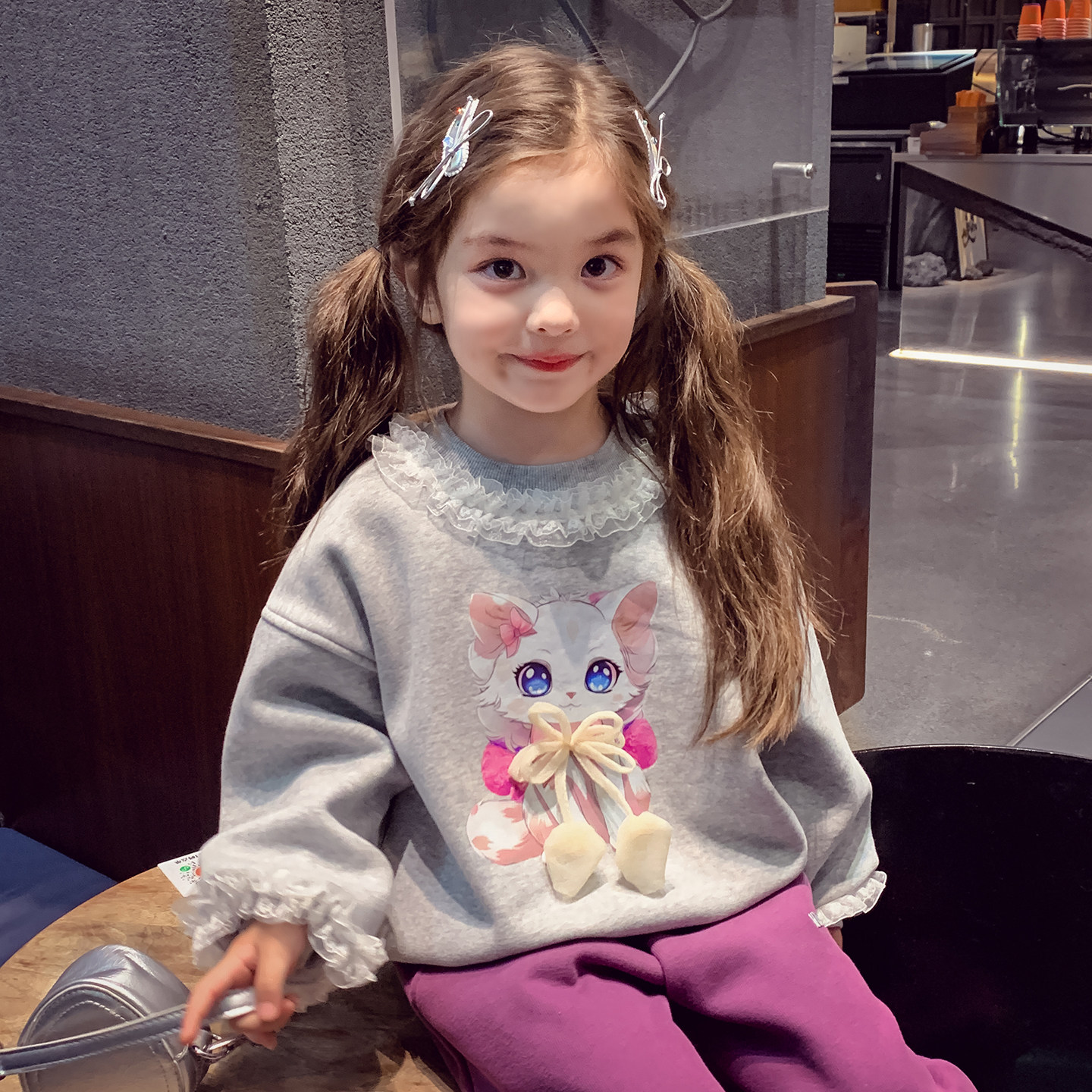 女童加绒卫衣秋冬装2025新款儿童宽松韩版网红卡通小女孩长袖上衣