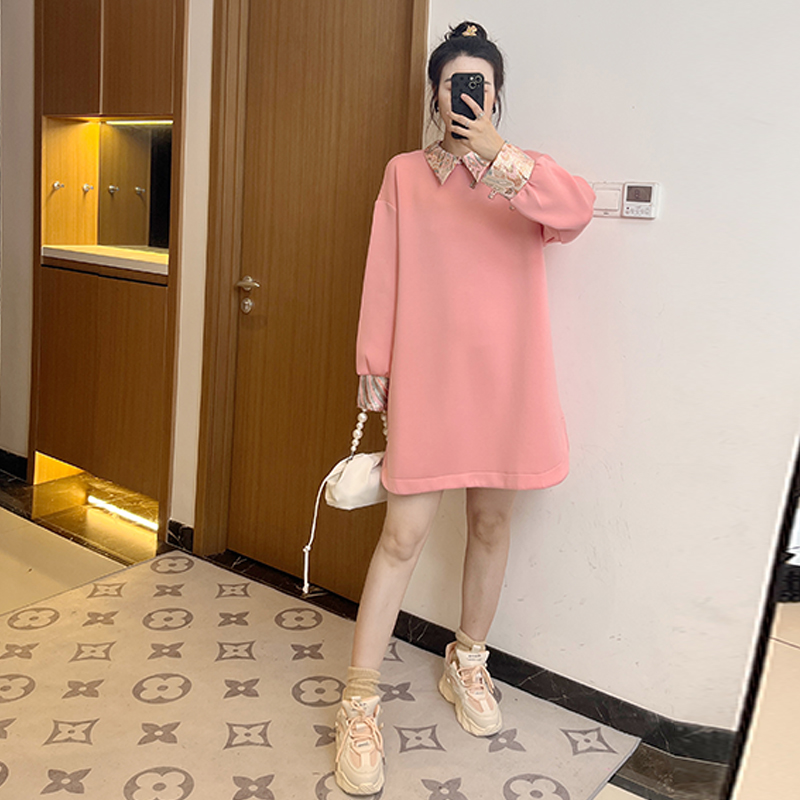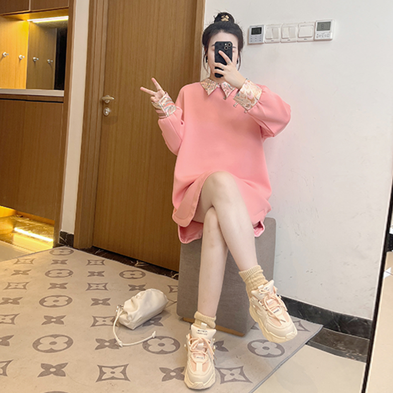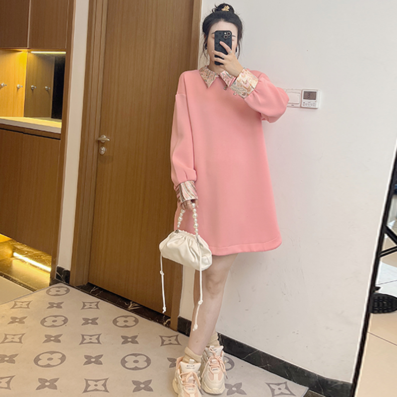 2025春季新款粉色卫衣裙女刺绣盘扣套头宽松休闲连衣裙大码女装