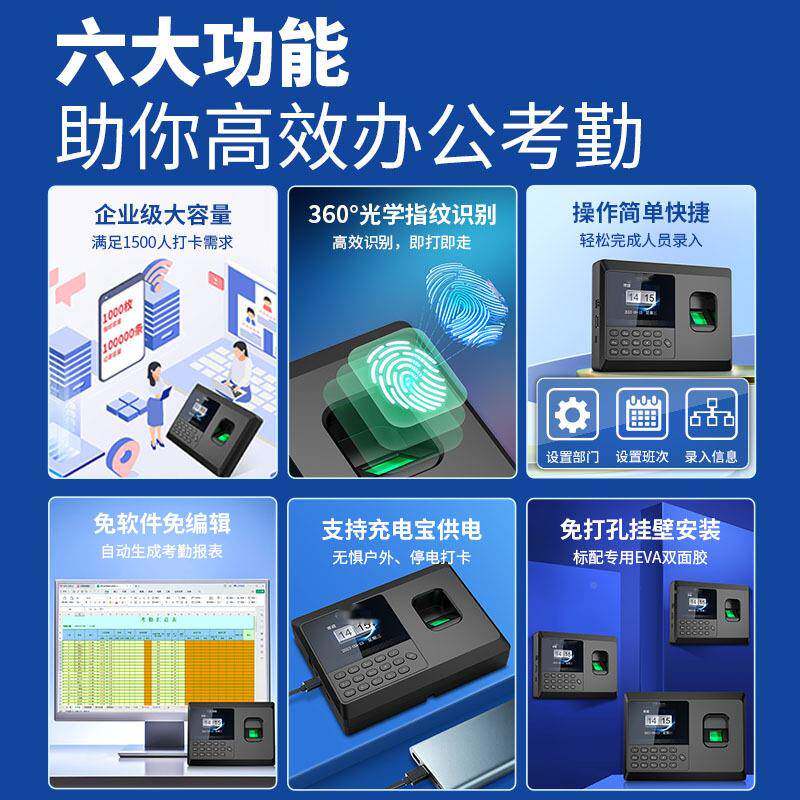 打卡机考勤到机纹式上下班出勤【指纹+签机企业公司别员工识打指
