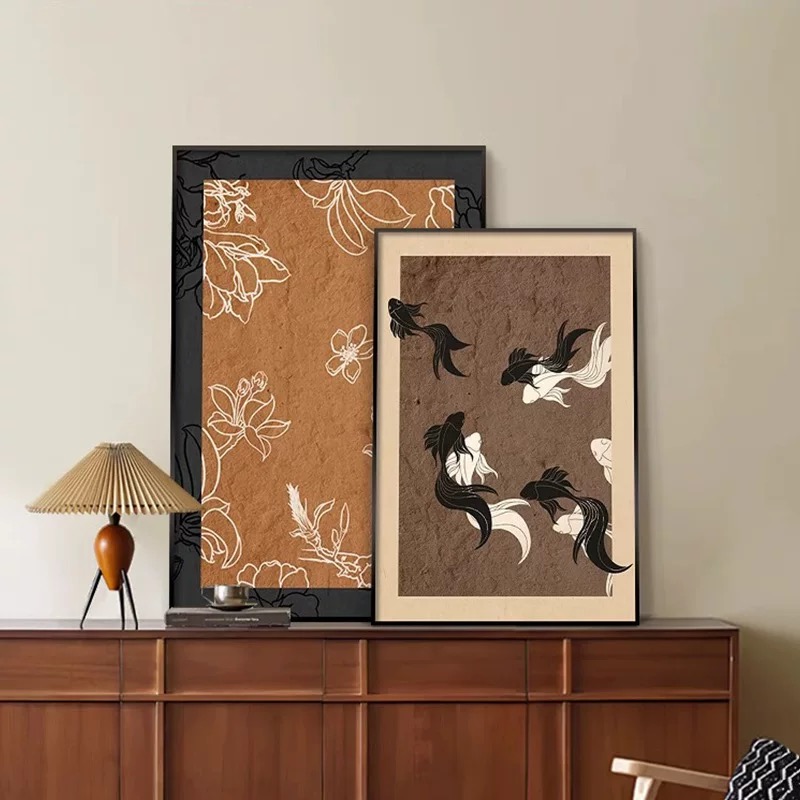 美拉德中古风客厅装饰画沙发背景墙落地挂画复古小众艺术桌面摆画