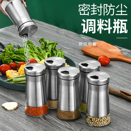 不锈钢调味瓶家用玻璃旋转调料罐厨房胡椒粉瓶户外便携烧烤调料瓶