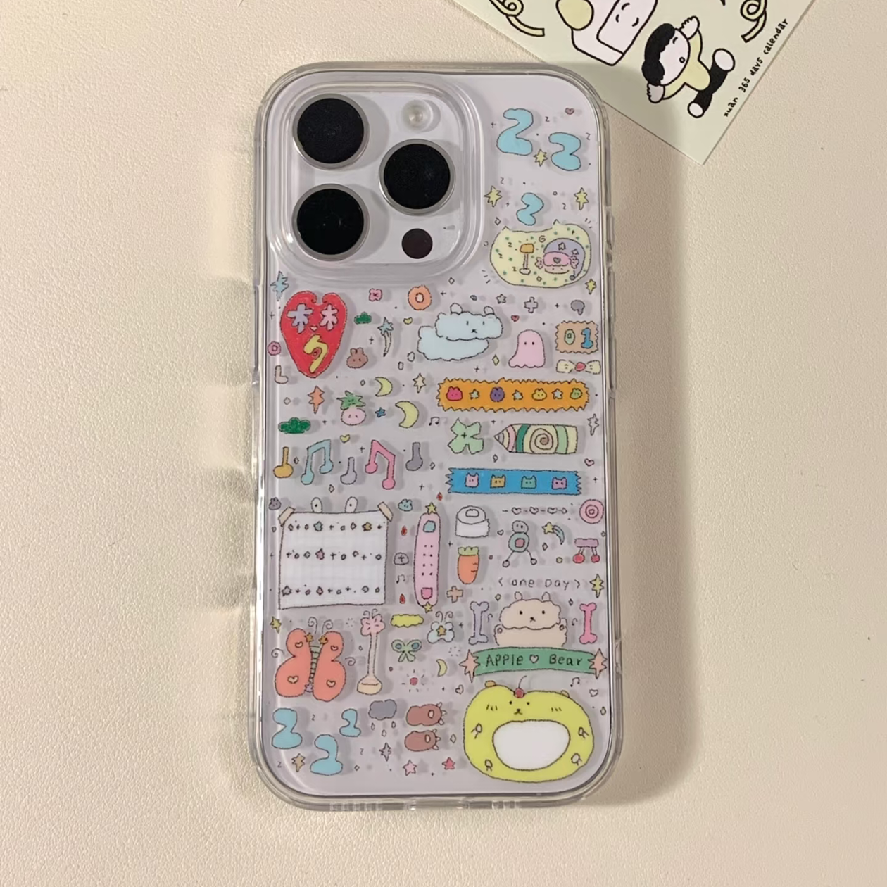 韩系可爱满屏涂鸦适用苹果17/16promax手机壳iPhone15pro防摔14透明13软萌卡通12简约11全包plus软mini创意xs