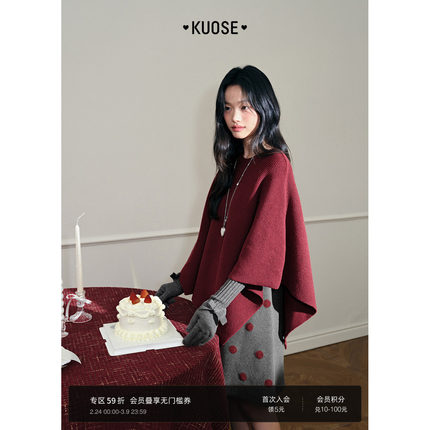 阔色斗篷毛衣背心裙连衣裙两件套装25秋冬季女外套披肩红色裙子春