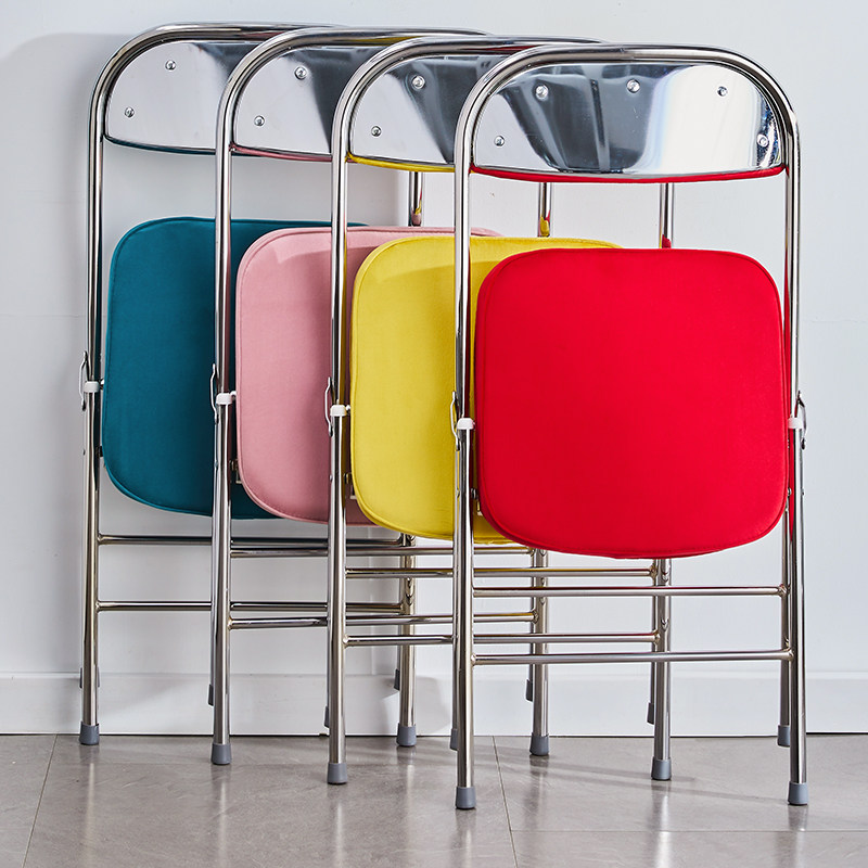 复古折叠椅子灯芯绒靠背餐椅家用加厚金属网红拍照椅怀旧办公凳子