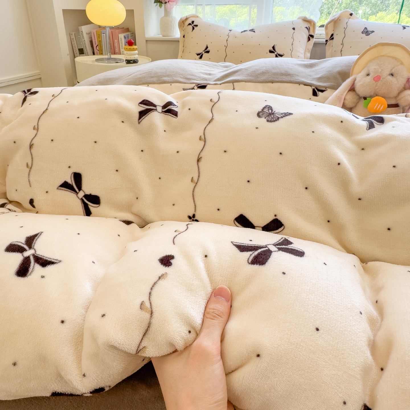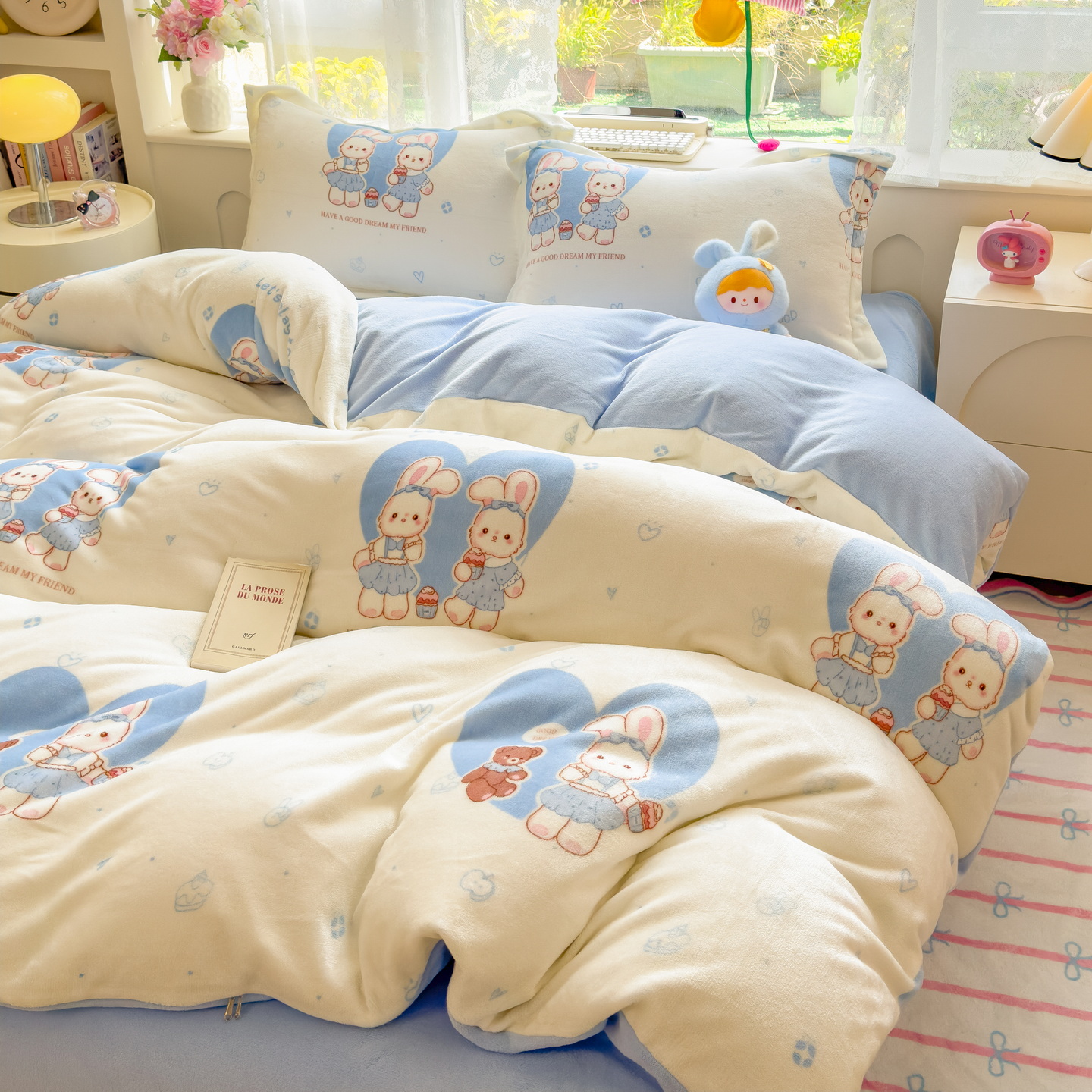 秋冬天加厚保暖小清新牛奶绒四件套床单床笠被套儿童床品学生宿舍