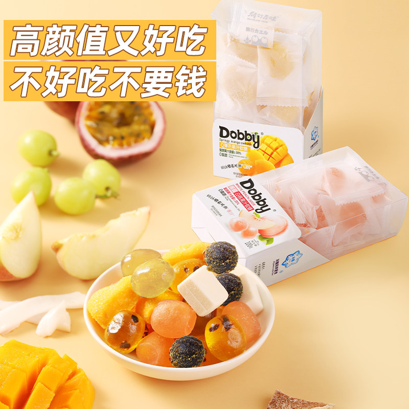 dobby哆比旅行青蛙扒皮剥皮水果软糖芒果白桃果汁糖果零食百香果