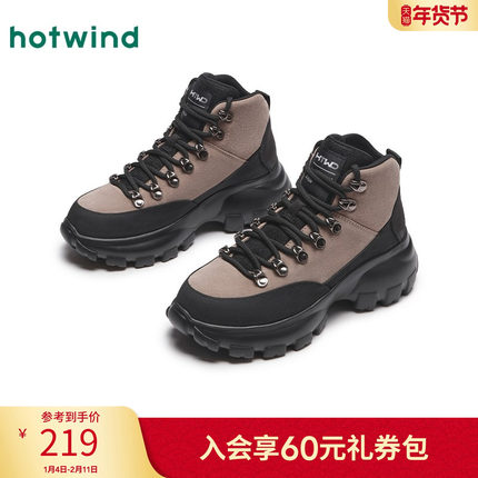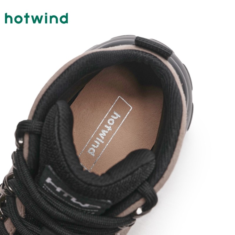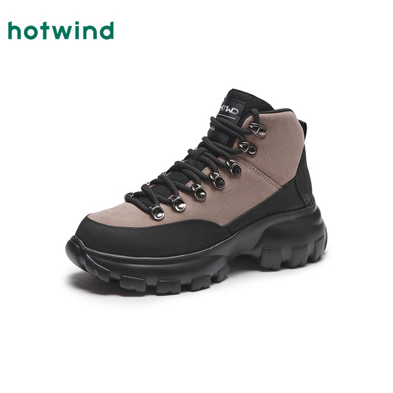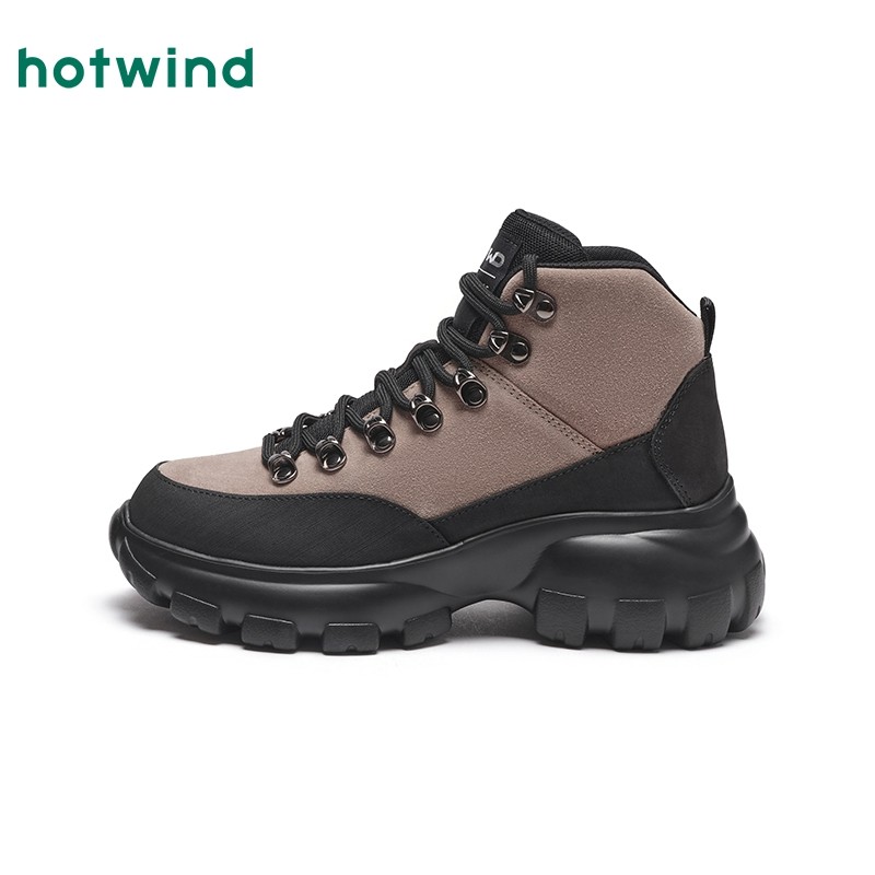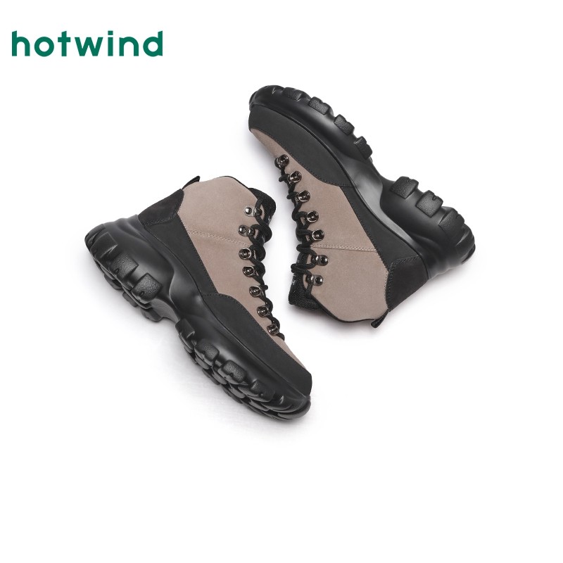 热风秋季新款女士简约休闲增高厚底马丁靴百搭拼色时尚女鞋