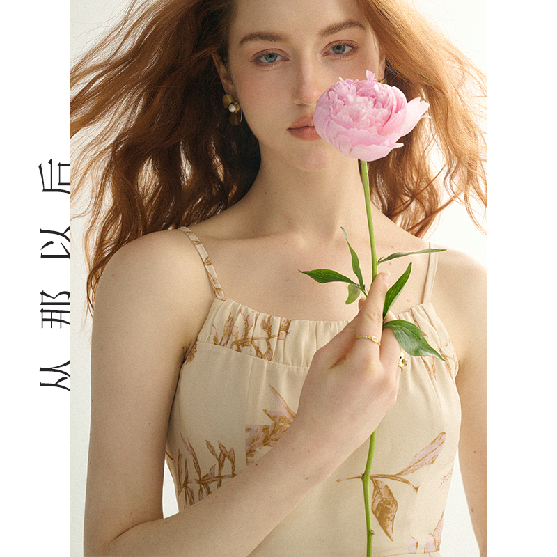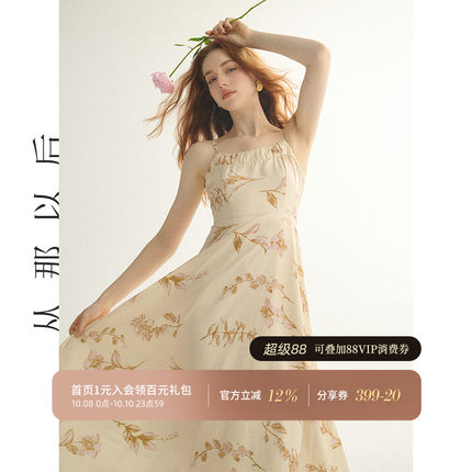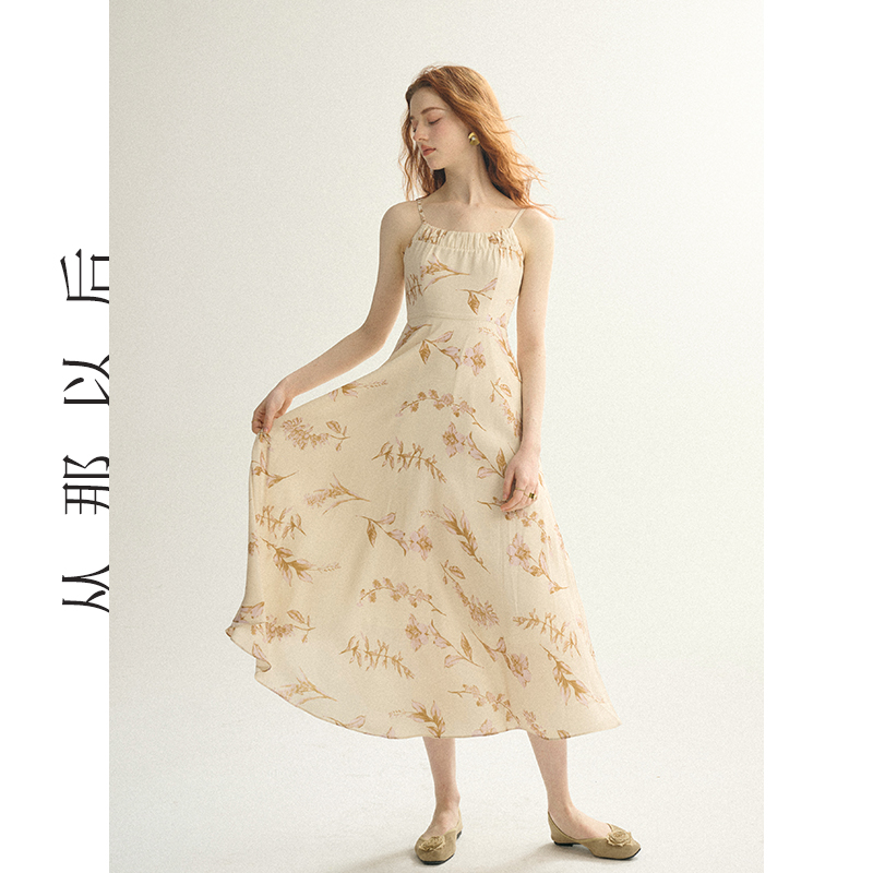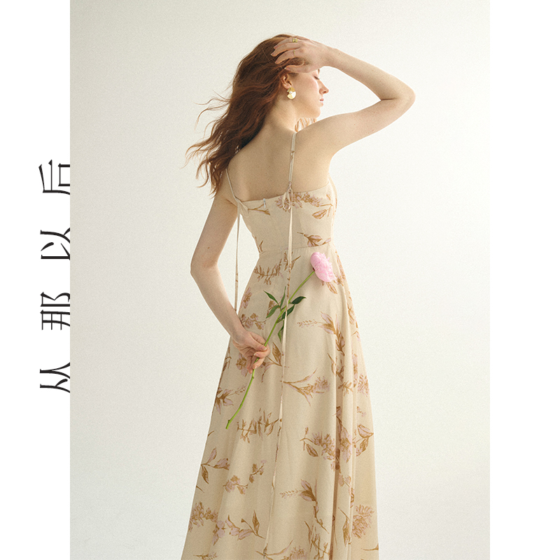 从那以后法式连衣裙海边度假风吊带裙碎花裙子绑带长裙女春季新款