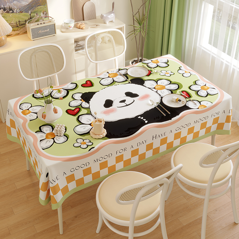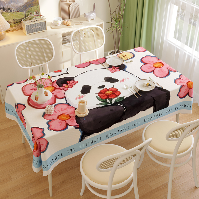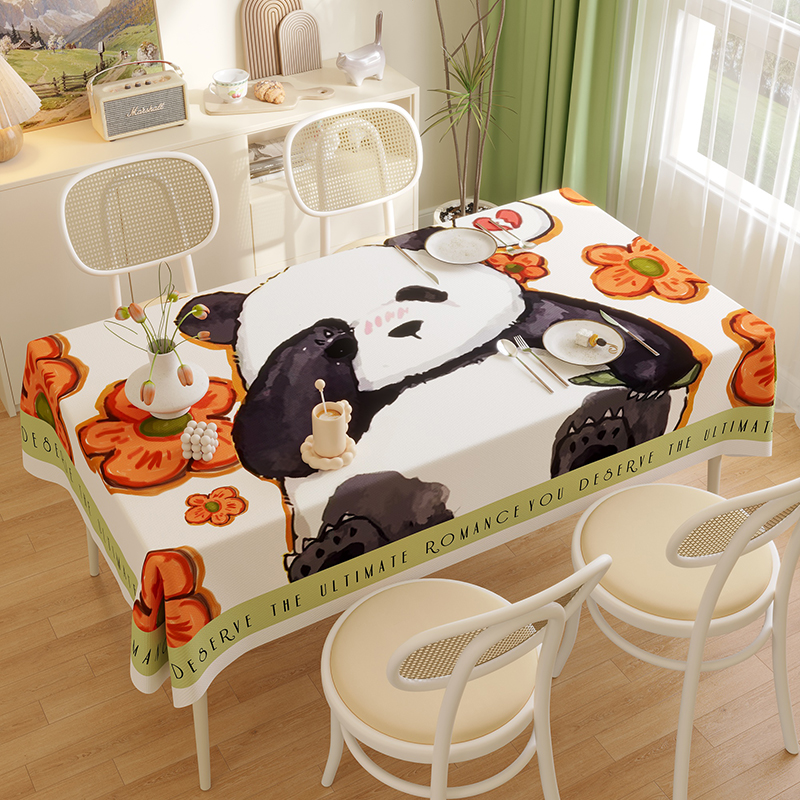 ins风可爱熊猫客厅加厚棉麻防水餐桌盖布高级布艺家用户外野餐布