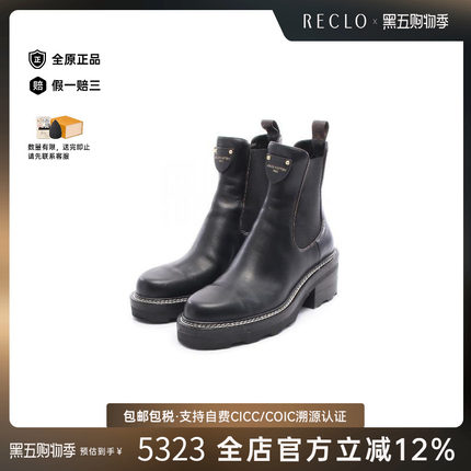 中古LV路易威登女A级95新side两边牛皮鞋黑色