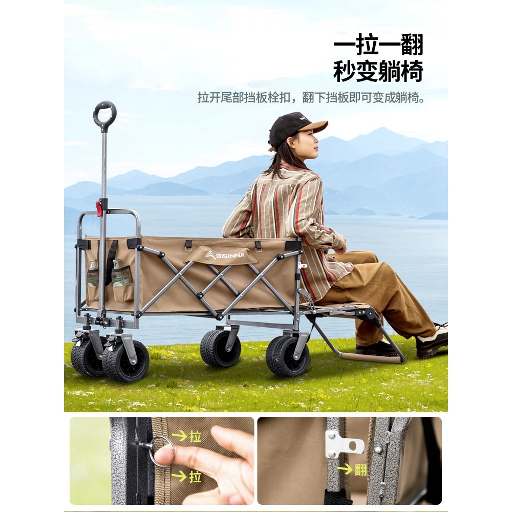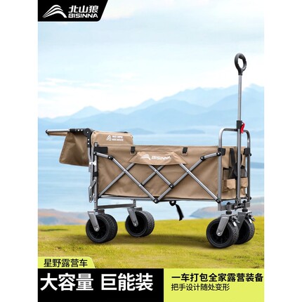 北山狼露营推车推拉一体户外野营手推车野餐摆摊可折叠小推车加长