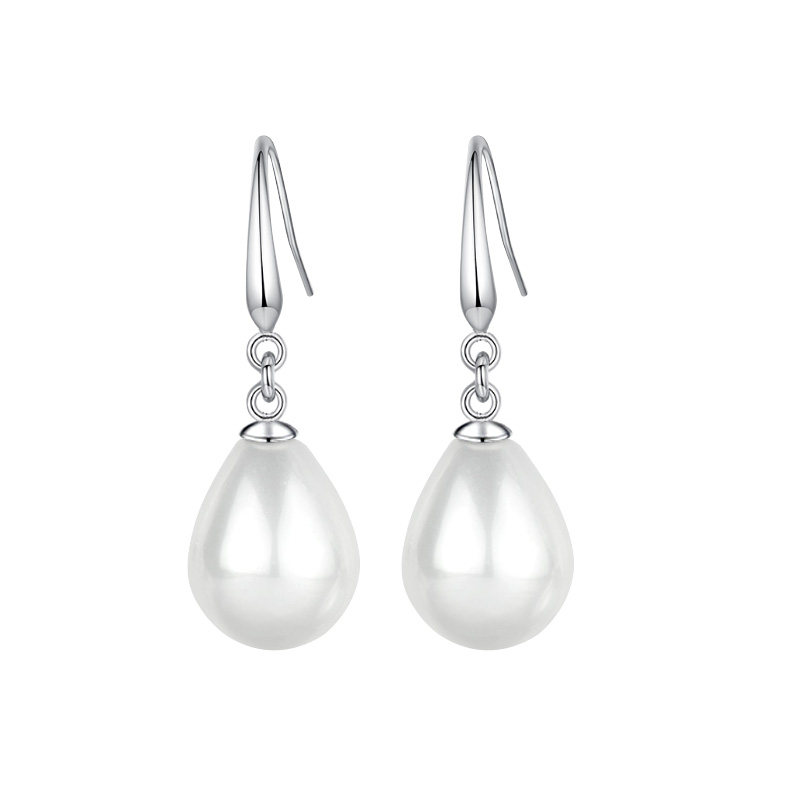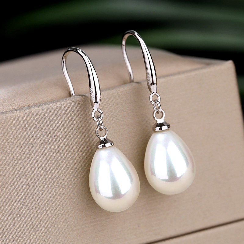 气质925纯银耳环女水滴形人工珍珠耳饰长款防过敏百搭耳坠妈妈款