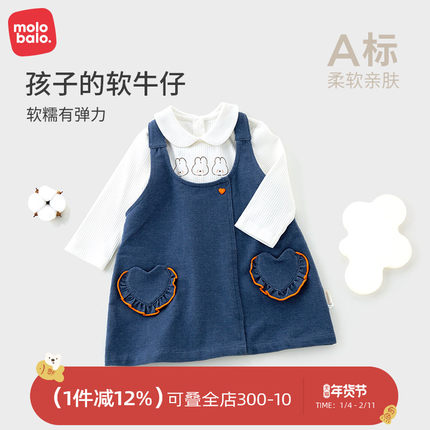 麦拉贝拉婴儿背带裙春秋季棉女宝宝公主裙女孩休闲外出牛仔连衣裙