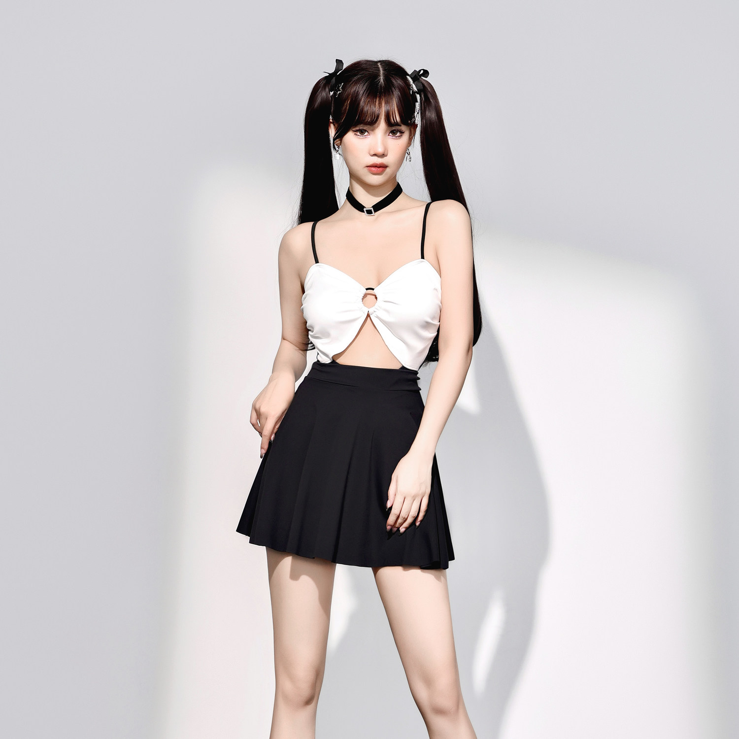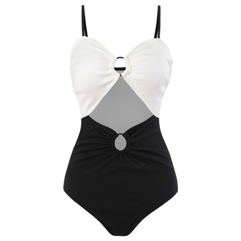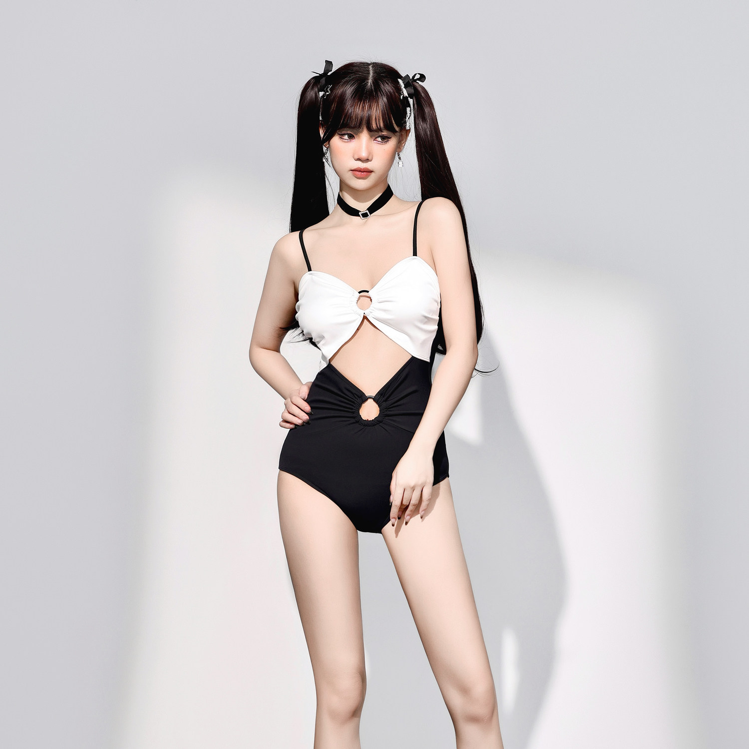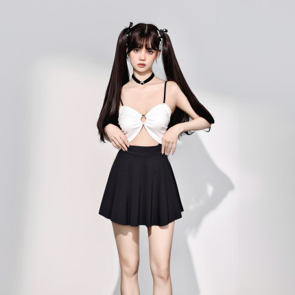 少年齐原创 2023新款性感辣妹高颜值女孩黑白显瘦两件复古游泳衣