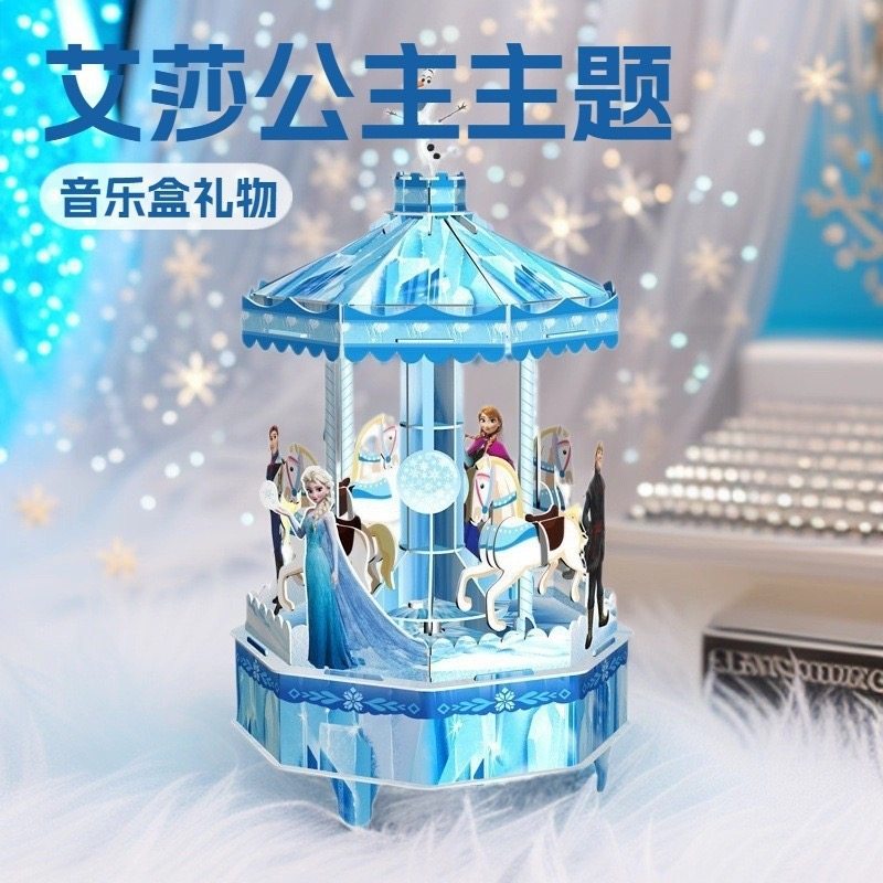迪士尼冰雪奇缘音乐盒旋转木马八音盒益智玩具凉亭女儿童生日礼品