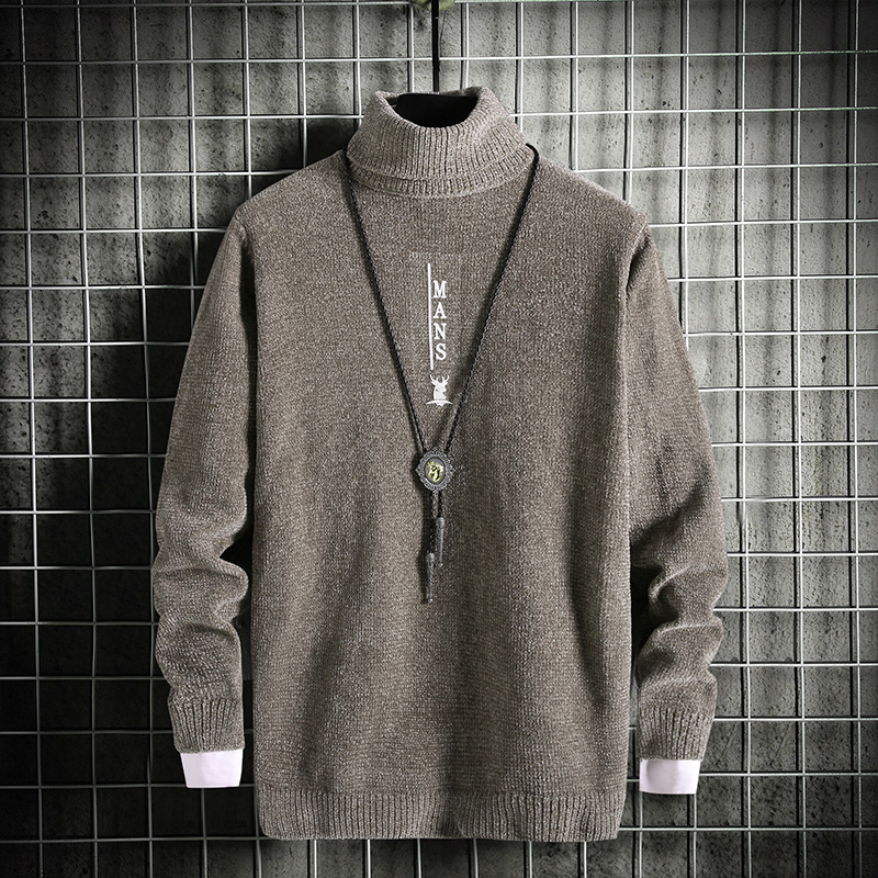 秋冬季男士高领雪尼尔毛衣男韩版长领针织衫高中学生加厚打底衫潮